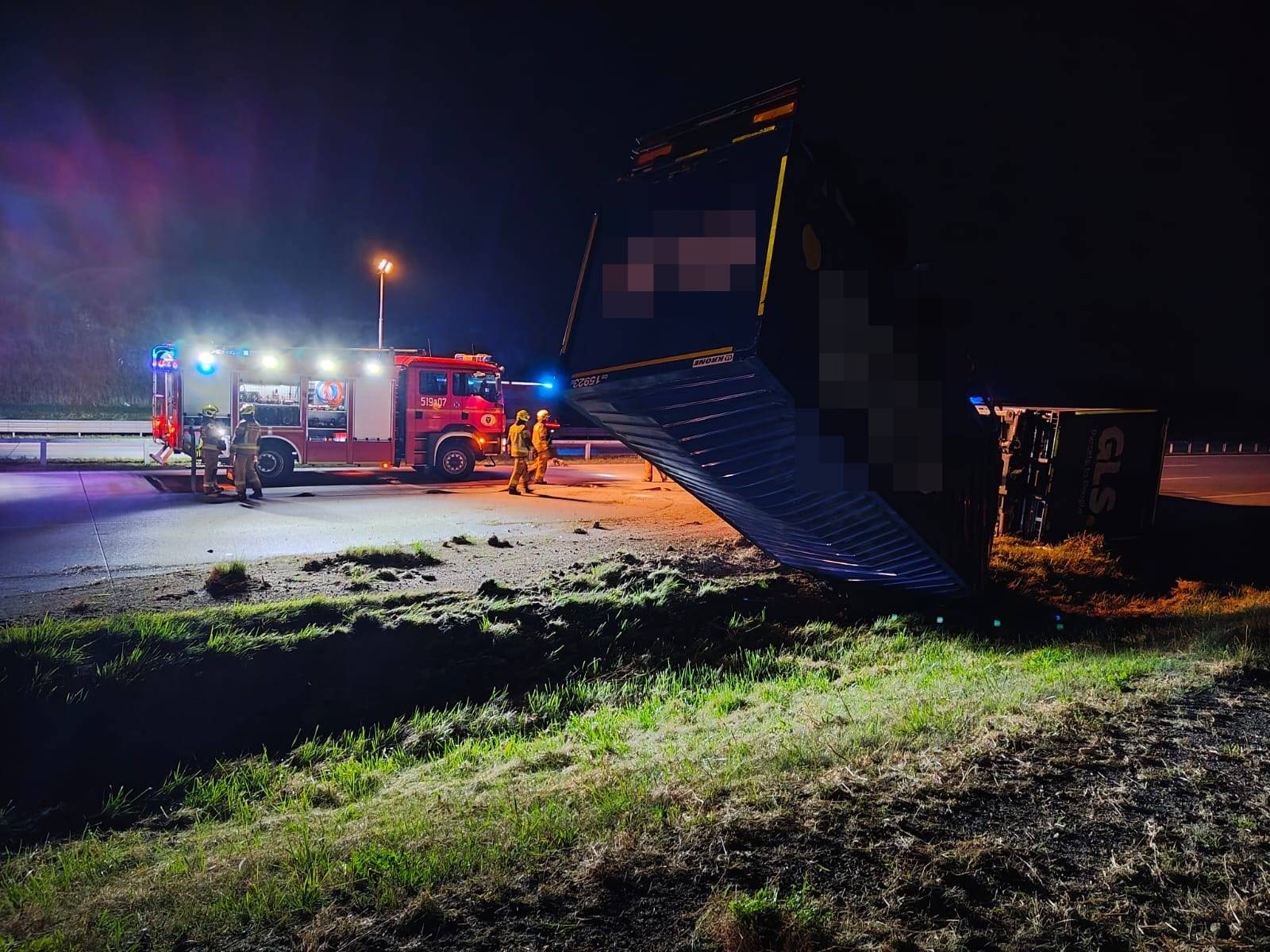 Na miejscu doszło do rozległego wycieku płynów eksploatacyjnych i paliwa - plama substancji rozciągała się na powierzchni około 20 m². Strażacy zabezpieczyli miejsce zdarzenia oraz przystąpili do neutralizacji zagrożenia chemicznego. Ich działania zakończyły sie po godzinie 5.00 rano, ale na miejscu cały czas pracują służby drogowe.