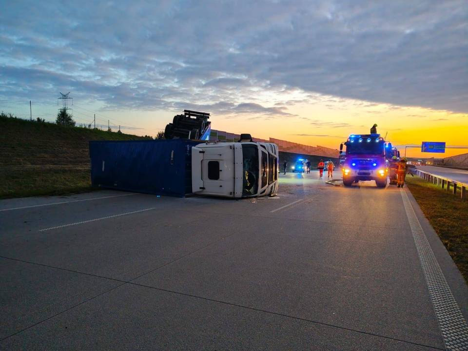 Do groźnego zdarzenia drogowego doszło dziś na autostradzie A1 w powiecie radomszczańskim. Na 376. kilometrze trasy, za węzłem Kamieńsk, w kierunku Katowic ciężarówka z przyczepą, z nieustalonych jeszcze przyczyn, przewróciła się na bok, blokując dwa pasy ruchu.