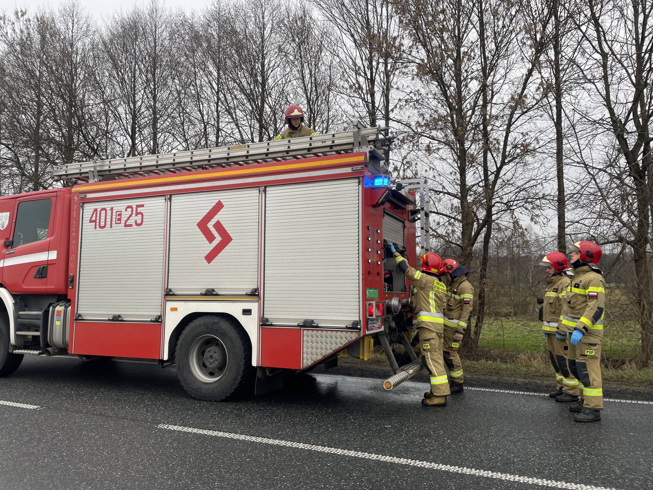 Zgłoszenie o wypadku wpłynęło do stanowiska kierowania Państwowej Straży Pożarnej w Bełchatowie o godzinie 9:24. Na miejsce zadysponowano dwa zastępy z JRG PSP Bełchatów oraz trzy zastępy Ochotniczych Straży Pożarnych – dwa z OSP Kluki oraz jeden z OSP Szczerców. Do działań skierowano również trzy zespoły ratownictwa medycznego oraz policję.