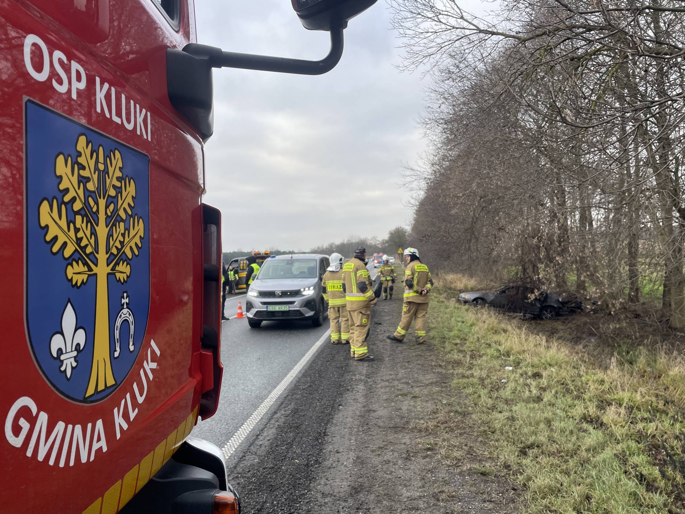 W niedzielę, 14 grudnia, na drodze krajowej nr 74 na terenie gminy Kluki doszło do groźnego wypadku z udziałem jednego samochodu osobowego. Zdarzenie miało miejsce w pobliżu miejscowości Kluki, na 67. kilometrze trasy. Trzy osoby podróżujące samochodem marki BMW zostały przetransportowane do szpitala.