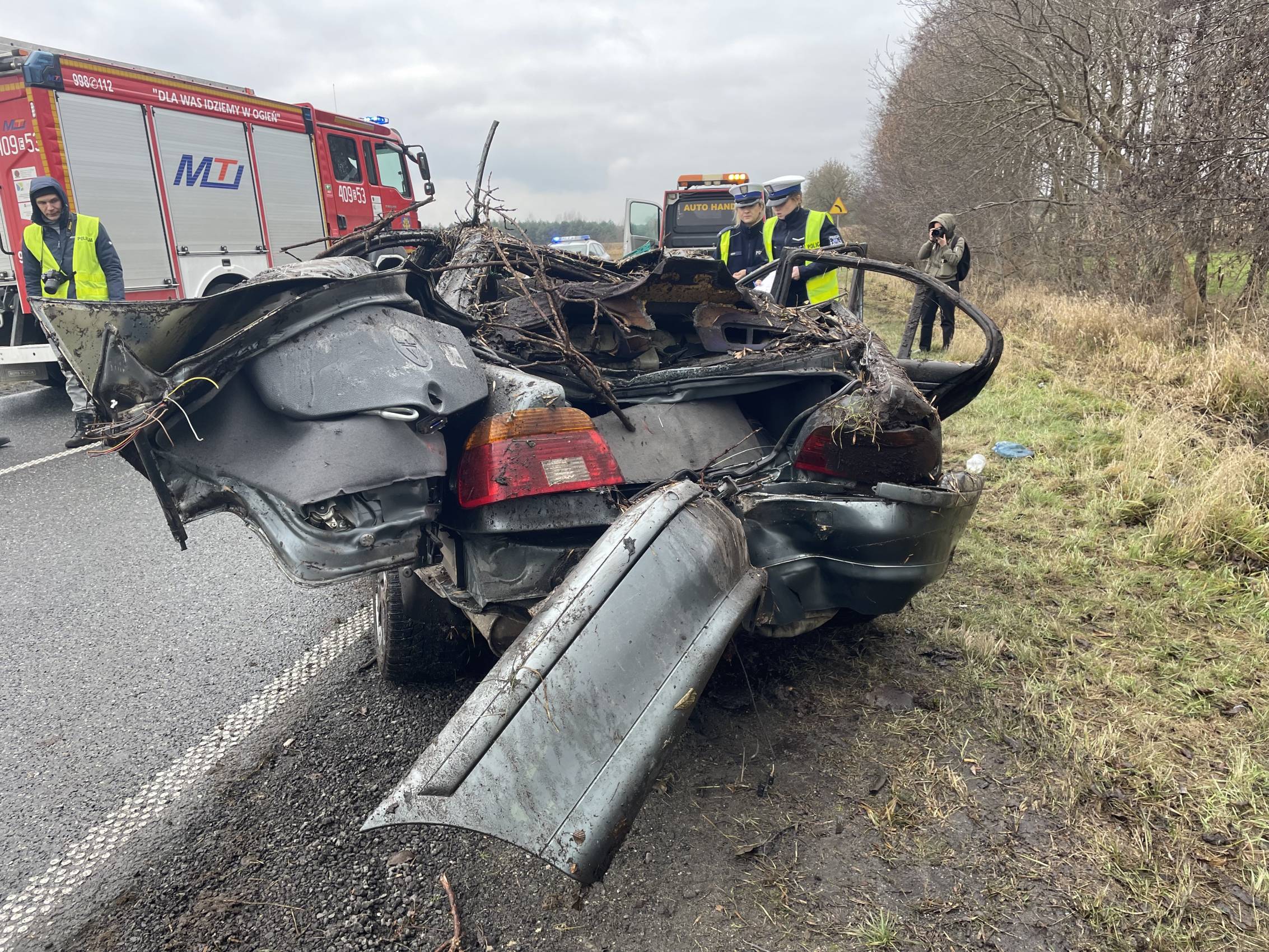 Autem podróżowały trzy osoby – dwóch młodych mężczyzn oraz starsza kobieta. Poszkodowaną, która podróżowała na tylnym siedzeniu z pojazdu musieli przy użyciu narzędzi uwolnić strażacy. Wszystkie osoby poszkodowane zostały przewiezione karetkami do szpitala.