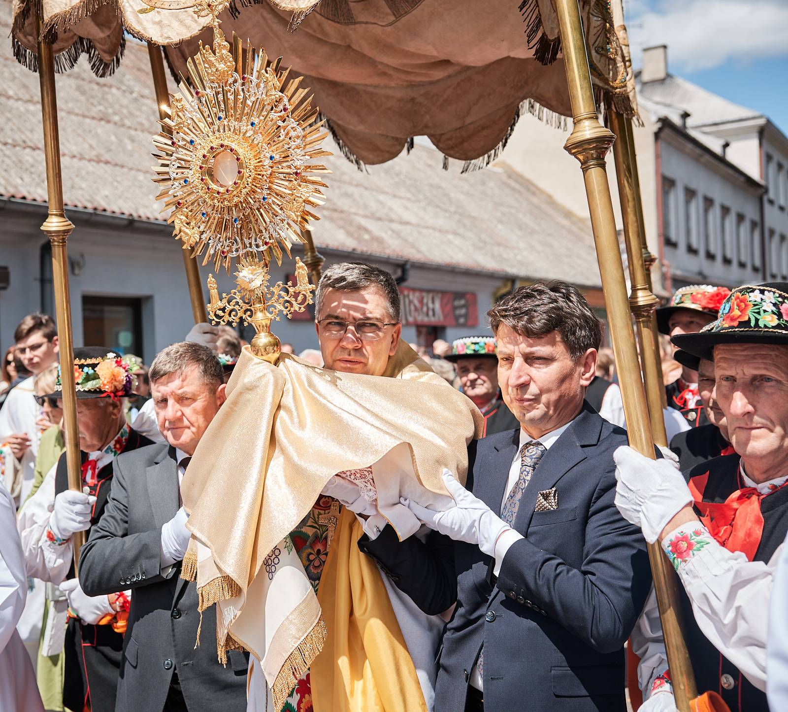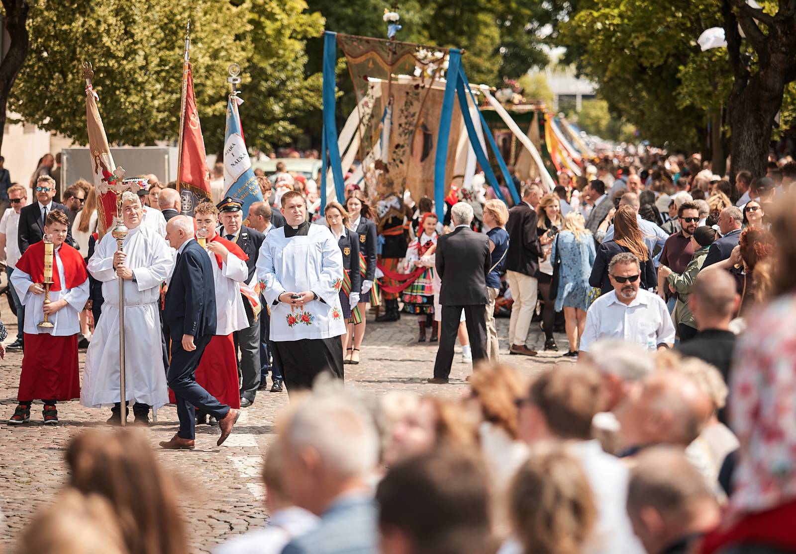 Łowicka procesja Bożego Ciała to nie tylko manifestacja wiary, ale też żywe świadectwo bogatej kultury ludowej i tradycji, które przez wieki były pielęgnowane przez lokalną społeczność. Wierni, ubrani w charakterystyczne dla regionu stroje z pasiakami – ręcznie tkane i haftowane, podkreślające regionalną tożsamość – wraz z kapłanami podążali ulicami miasta, tworząc niezwykle barwny i podniosły korowód.