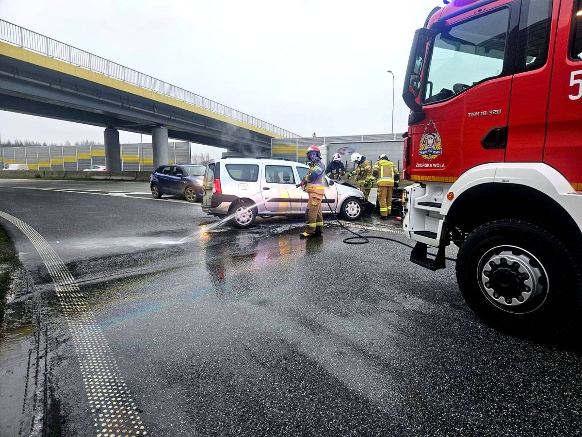 Policjanci zaczęli gasić płonący samochód, ograniczając rozprzestrzenianie się ognia do czasu przyjazdu straży pożarnej, która następnie dogasiła pojazd oraz zabezpieczyła teren. Kierowca z obrażeniami został przewieziony do szpitala.