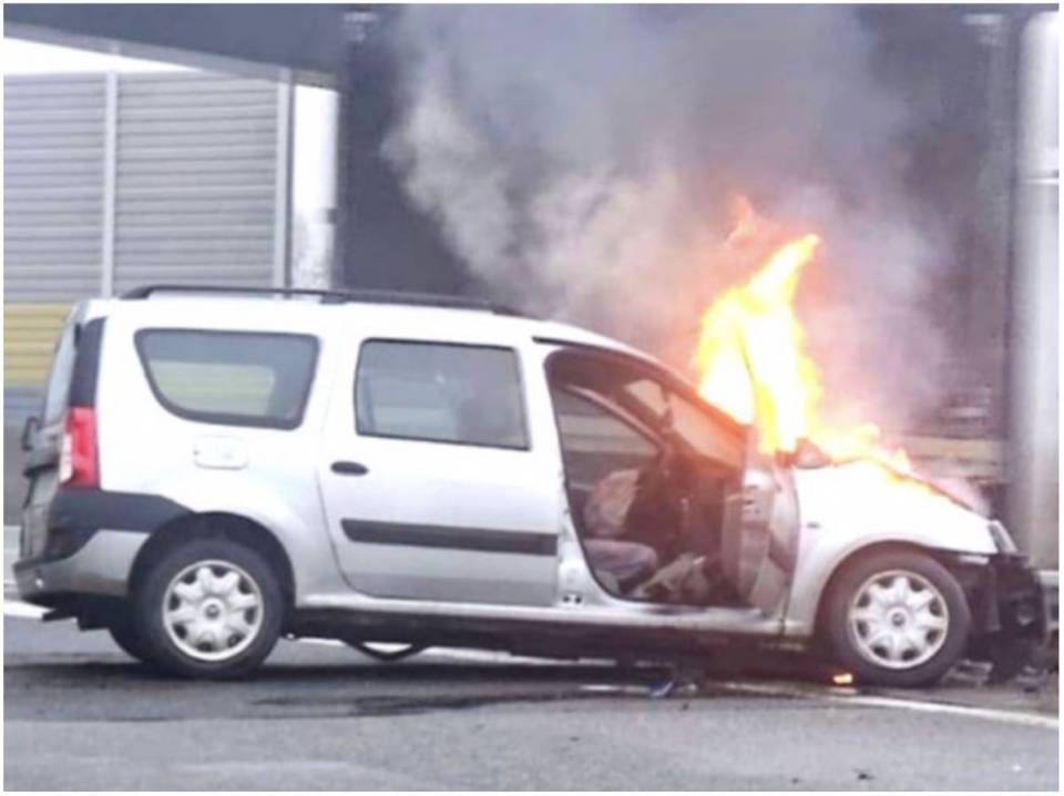 Jadący przed policjantami, kierowca Dacii nagle zaczął zjeżdżać na prawą stronę jezdni. Pojazd najpierw najechał na linię ciągłą, następnie na powierzchnię wyłączoną z ruchu, po czym czołowo uderzył w stalowe bariery drogowe. Siła zderzenia była tak duża, że samochód po chwili zaczął się palić.