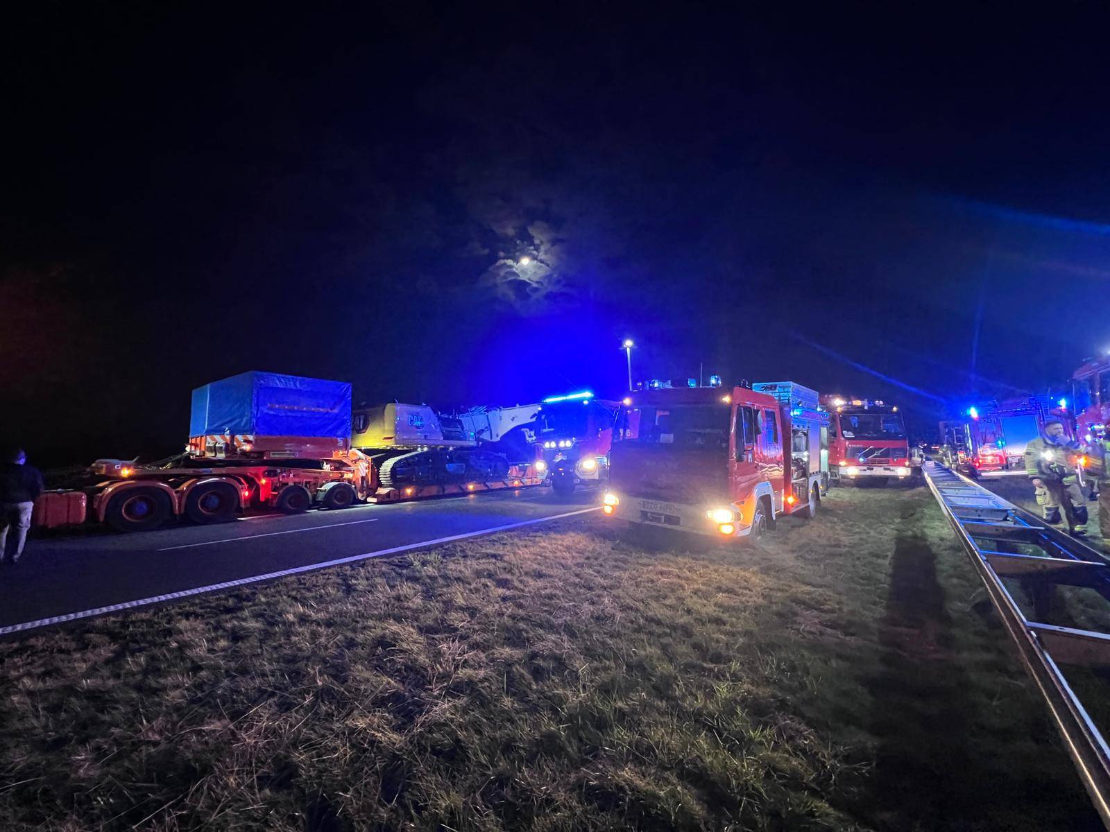 Druga poszkodowana osoba to kierowca samochodu pilotującego transport. Mężczyzna znajdował się poza pojazdem w chwili zdarzenia i został przetransportowany przez Zespół Ratownictwa Medycznego do szpitala. Jego stan zdrowia nie został na razie oficjalnie określony.