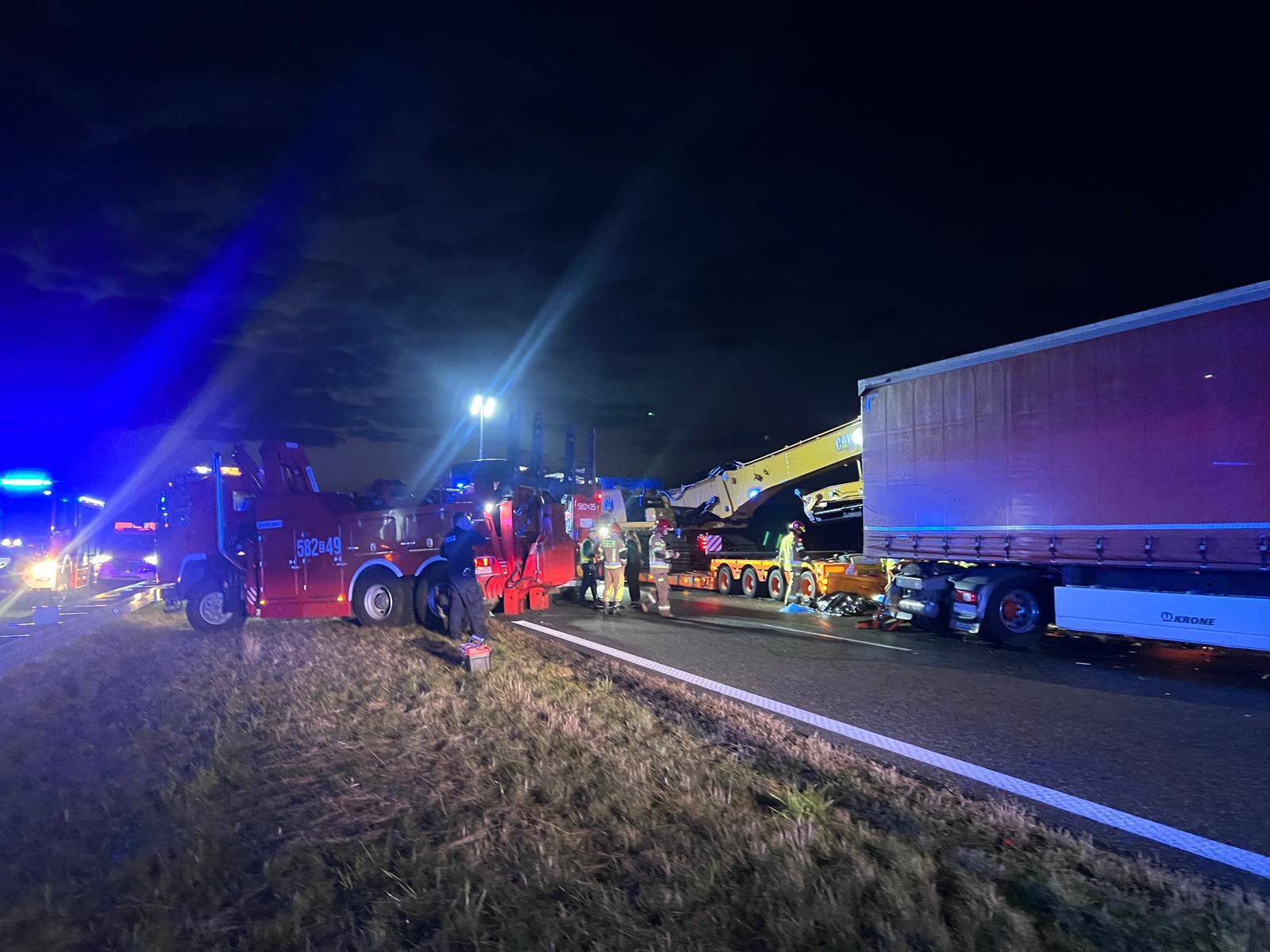 W okolicach miejscowości Florianki zderzyły się dwie ciężarówki – w tym zestaw oversize przewożący maszynę budowlaną – oraz samochód osobowy pełniący funkcję pilota transportu ponadnormatywnego.W wyniku wypadku śmierć na miejscu poniósł kierowca TIR-a. Jak przekazuje bryg. Jędrzej Pawlak, oficer prasowy KW PSP w Łodzi mężczyzna doznał tak poważnych obrażeń, że służby ratownicze – po przybyciu na miejsce – odstąpiły od próby ewakuacji z pojazdu.