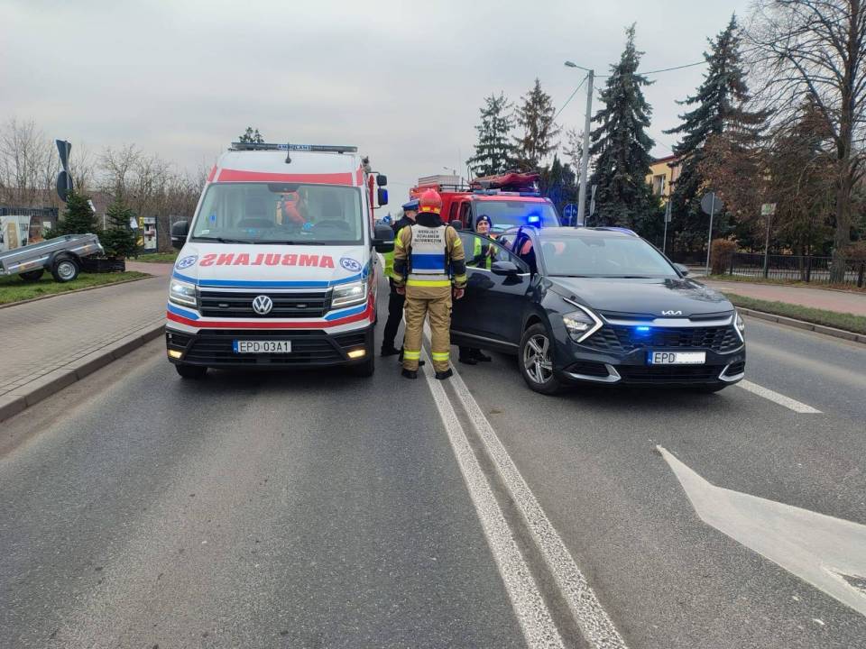 Na miejsce zdarzenia natychmiast skierowano służby ratunkowe. Zespół ratownictwa medycznego udzielił kobiecie niezbędnych medycznych czynności ratunkowych, po czym została ona przetransportowana do szpitala w Łodzi na dalszą diagnostykę i leczenie.