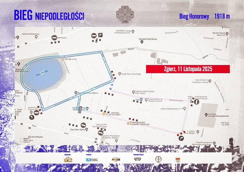 • Bieg Honorowy na symbolicznym dystansie 1918 metrów rozpocznie się o godz. 11:11 i potrwa do ok. 11:45. W tym czasie, od 10:30 do 12:00, zamknięte zostaną skrzyżowania i ulice znajdujące się na trasie biegu honorowego.