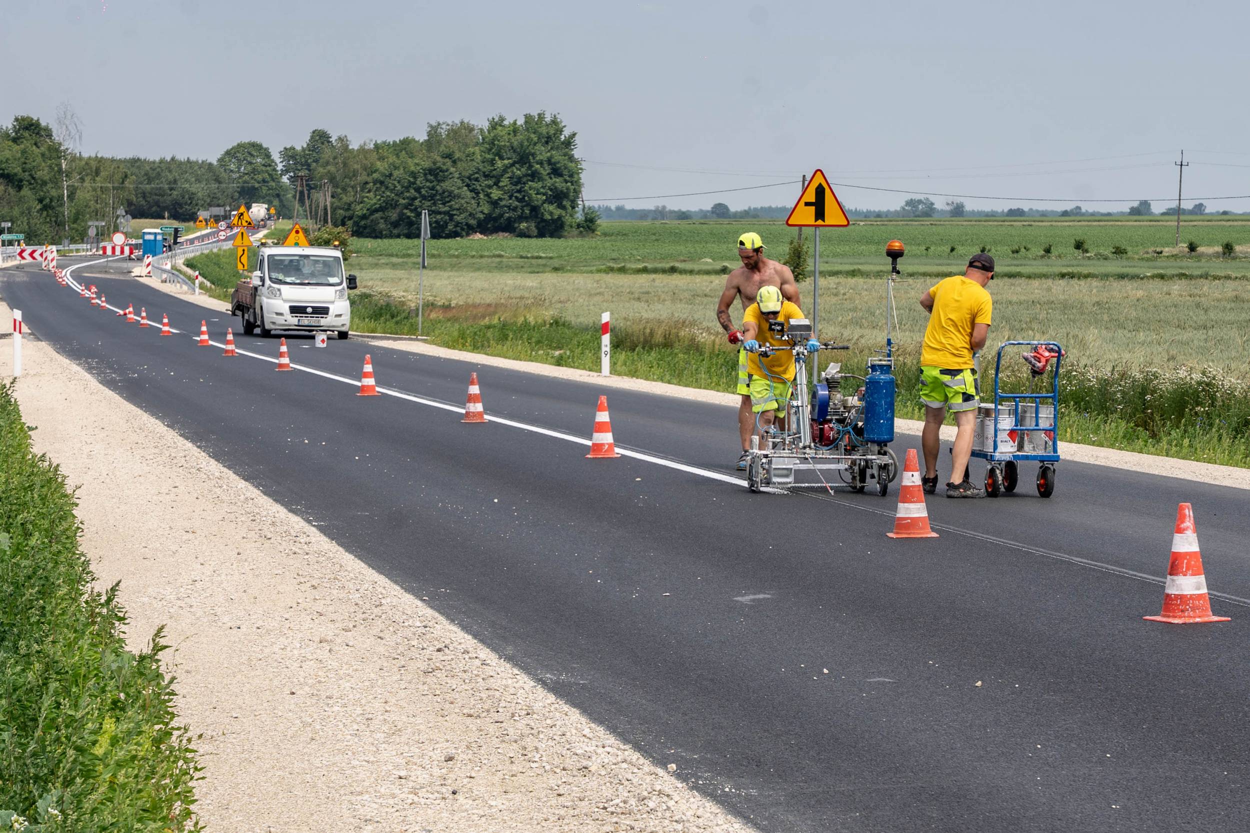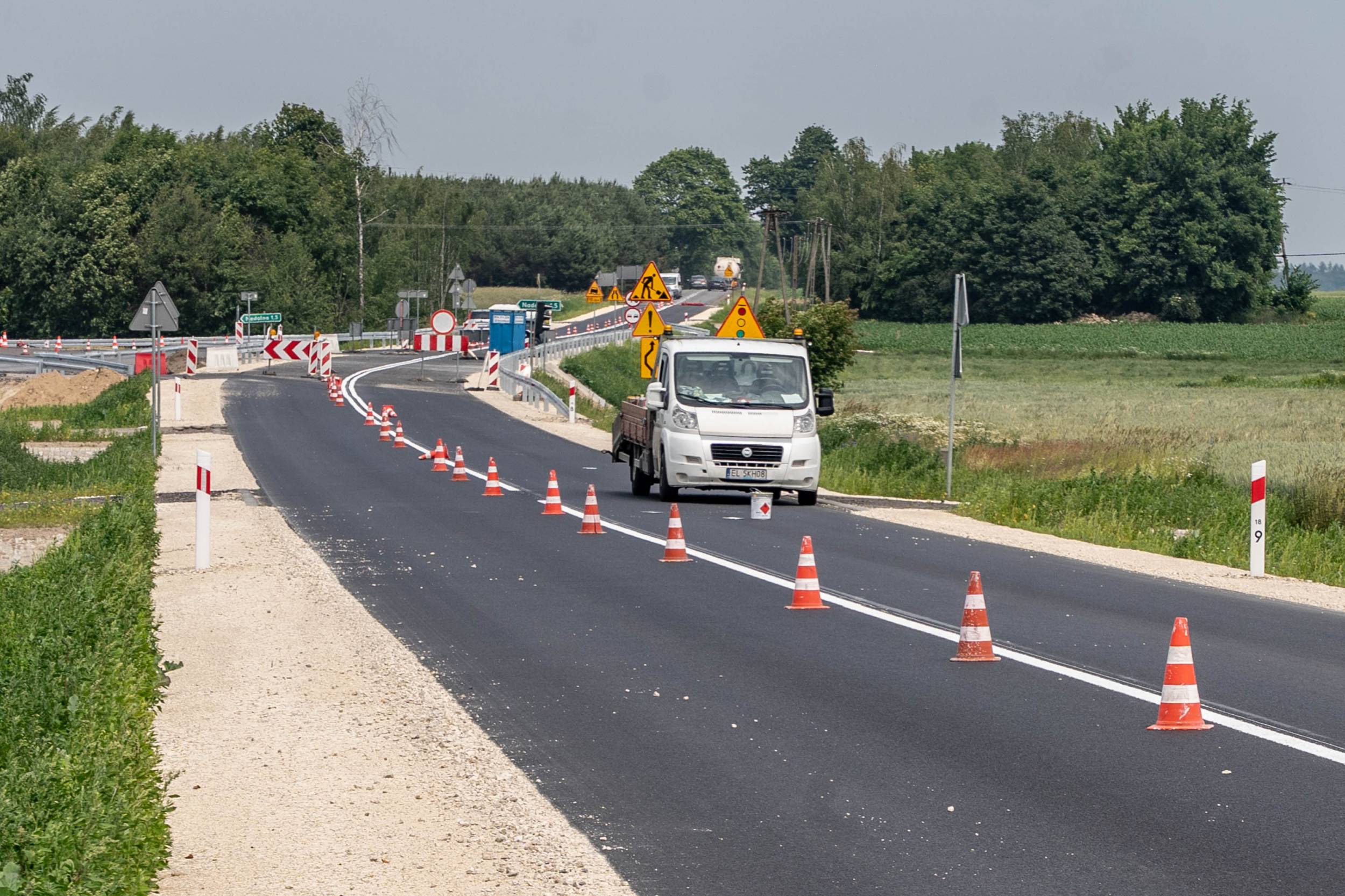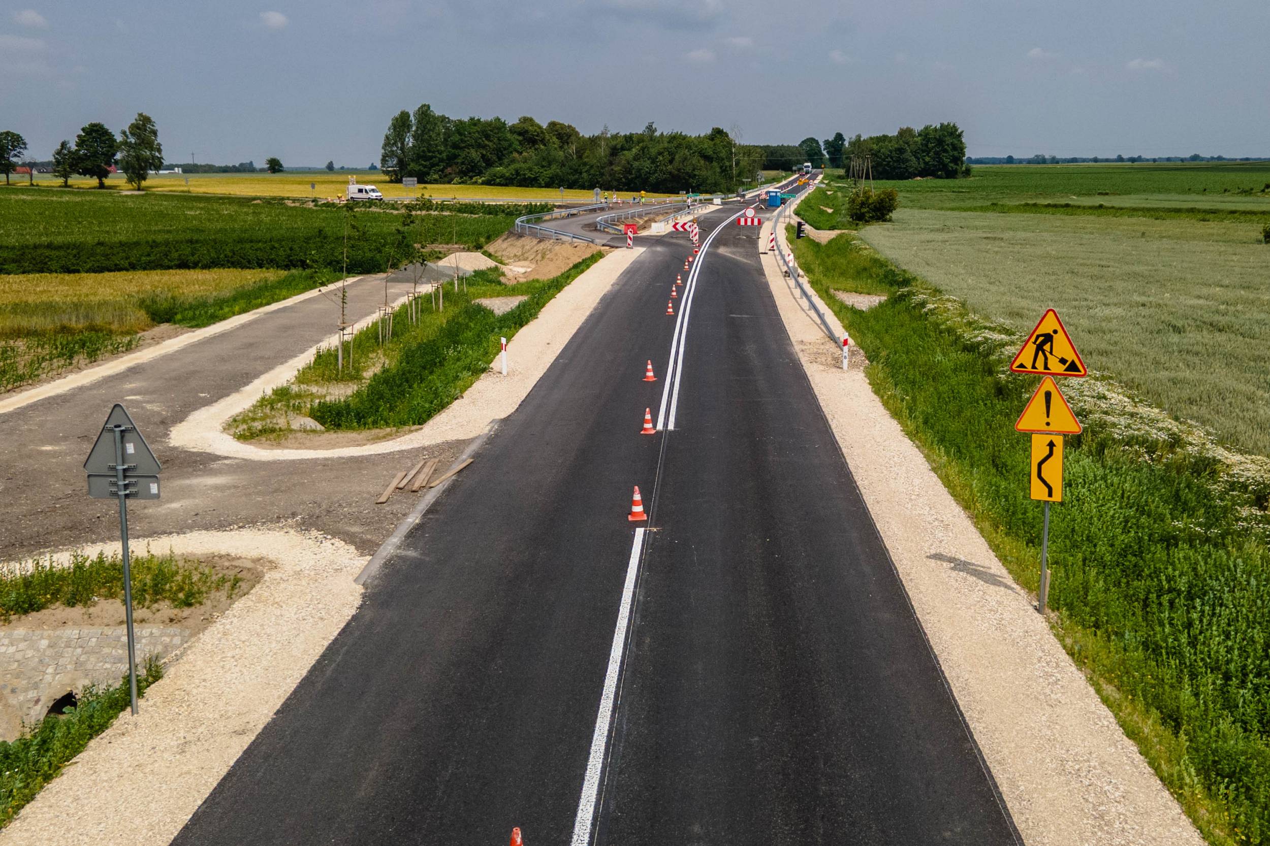 Obecnie trwają prace związane z malowaniem oznakowania poziomego – to jeden z ostatnich etapów inwestycji. Głównym elementem projektu był nowy przepust drogowy, który zastąpił wysłużony most z 1947 roku, znajdujący się w złym stanie technicznym.