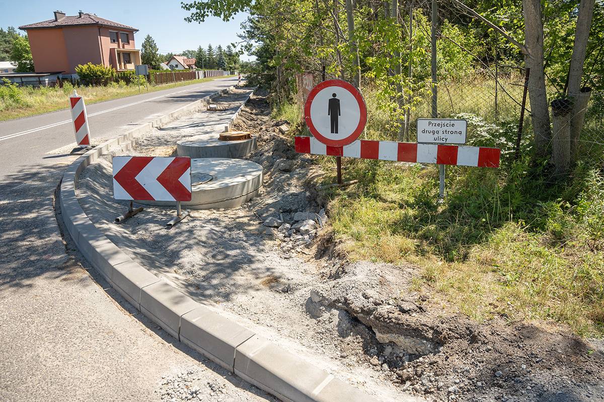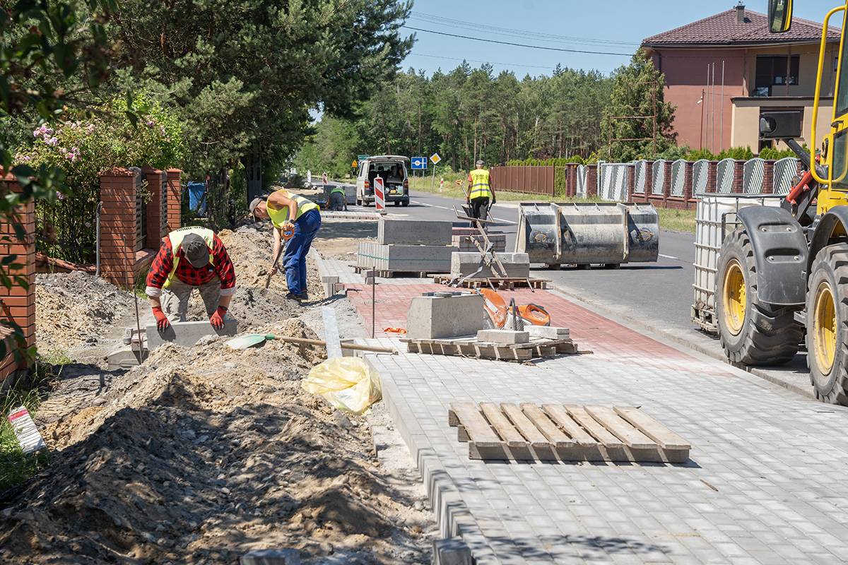 Zakończono już modernizację przepustu pod drogą, a prace przy układaniu nawierzchni chodnika zmierzają ku końcowi – zwłaszcza na odcinku przylegającym do terenu leśnego. Zgodnie z harmonogramem, całość inwestycji ma zostać ukończona do końca wakacji.