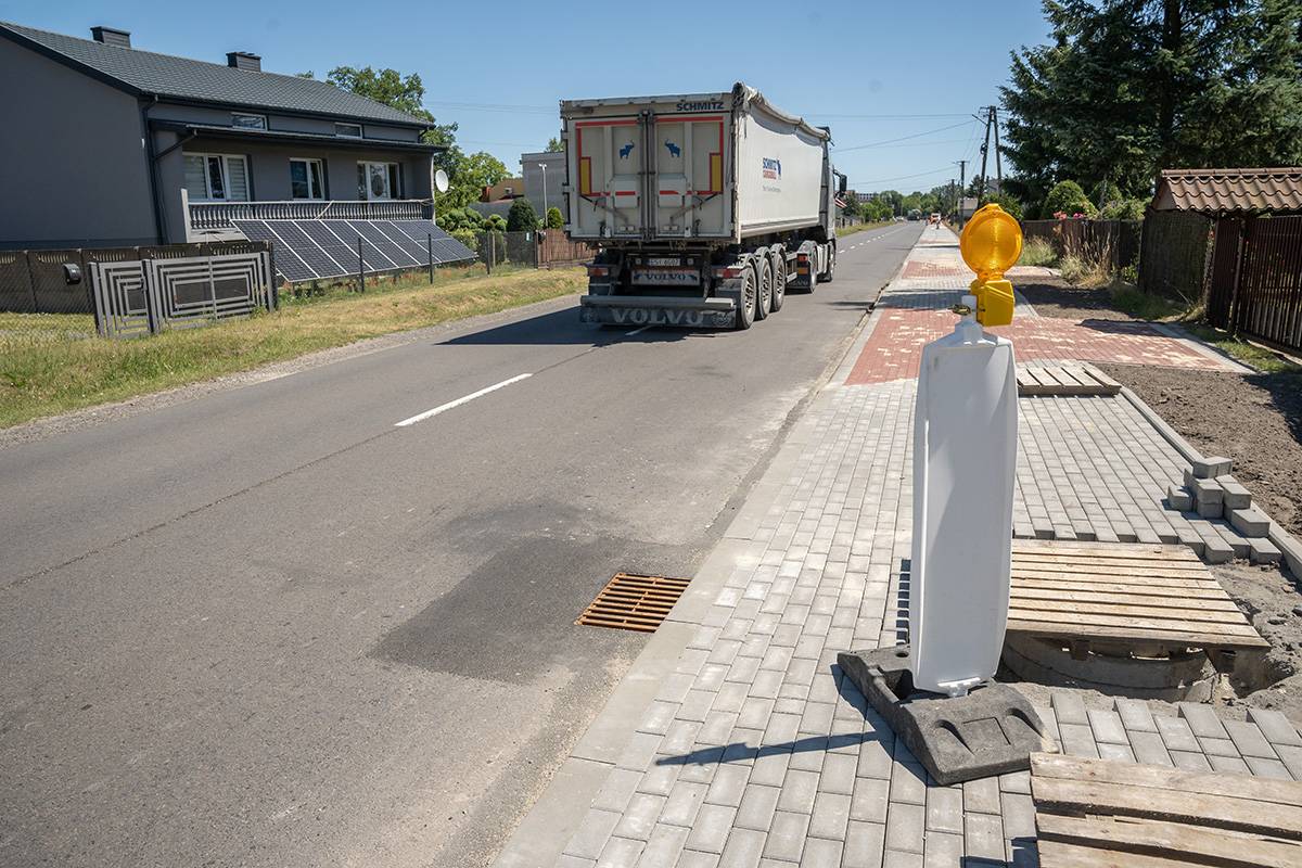 Inwestycja, na którą mieszkańcy czekali od dawna, weszła w zaawansowaną fazę realizacji – obecnie wykonano już około 80% zaplanowanych robót. W ramach zadania budowany jest nowy chodnik o długości 700 metrów, który połączy ulice Południową i Spacerową. To niezwykle istotne udogodnienie, zwłaszcza że dotąd piesi byli zmuszeni poruszać się poboczem ruchliwej drogi, na prostym i nieosłoniętym odcinku, biegnącym tuż obok domów jednorodzinnych. Brak infrastruktury dla pieszych stanowił poważne zagrożenie, szczególnie dla dzieci, osób starszych oraz osób z ograniczoną mobilnością.