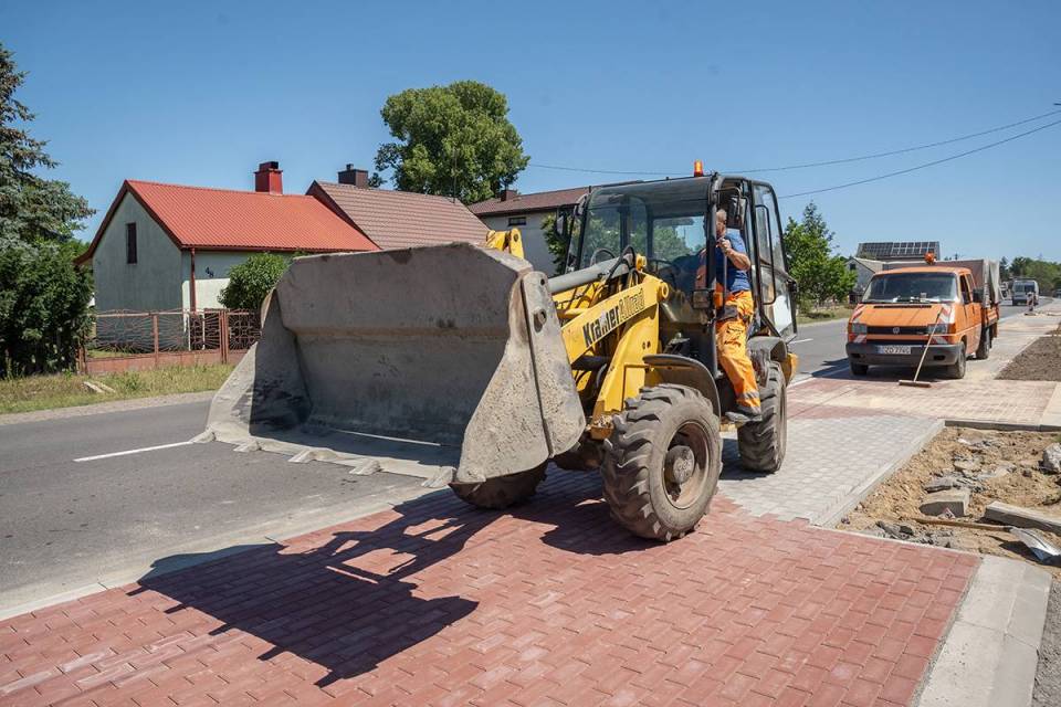 Kończy się budowa nowego chodnika przy ruchliwej wojewódzkiej drodze w Rossoszycy w gminie Warta. Piesi będą bezpieczniejsi
