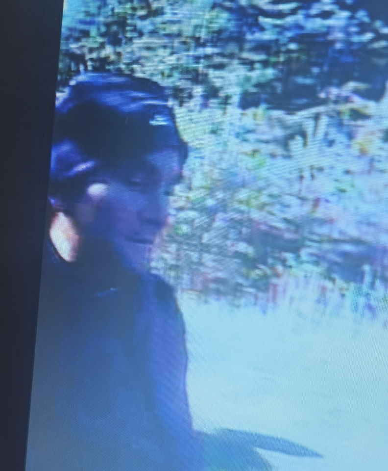 Zarejestrowano dwóch mężczyzn, wyglądających na około 50-latków. Pierwszy z nich ubrany był w czarną kurtkę z kapturem, czarne dresowe spodnie z jasnymi wstawkami przy kieszeniach i buty trekkingowe. Na głowie miał czarną czapkę z drobnym, jasnym napisem, a na plecach – charakterystyczny czarny plecak z czerwonymi dodatkami.