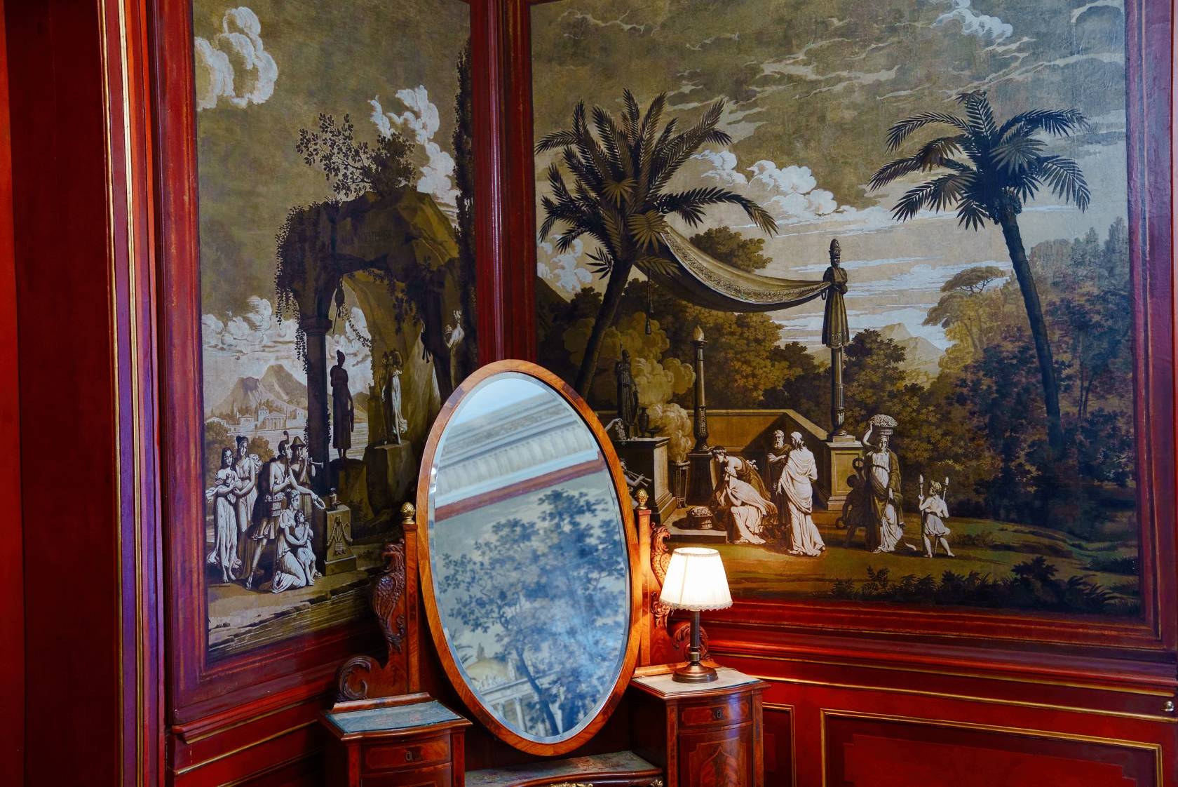 Według lokalnej tradycji, Maria przygotowała dla niego specjalny pokój w rezydencji, a cesarz miał odwiedzić ją potajemnie w czasie jednej z kampanii. Umeblowany z wielką starannością, miał zapewnić komfort i prywatność najważniejszemu gościowi pałacu. Pokój zdobią zachowane oryginalne tapety – ręcznie wykonywane, z delikatnymi motywami roślinnymi, sprowadzane prawdopodobnie z Francji. Ich doskonały stan zachowania do dziś budzi podziw historyków i konserwatorów sztuki. Jednak mimo tej opowieści brakuje jednoznacznych źródeł historycznych, które potwierdzają, że Napoleon kiedykolwiek przebywał w Walewicach.