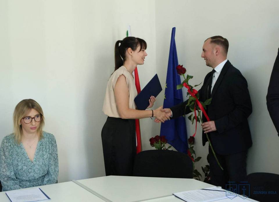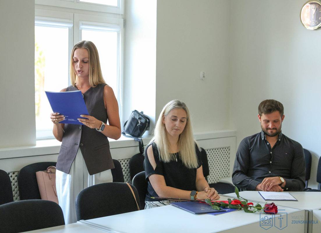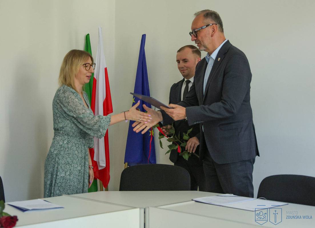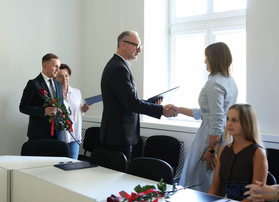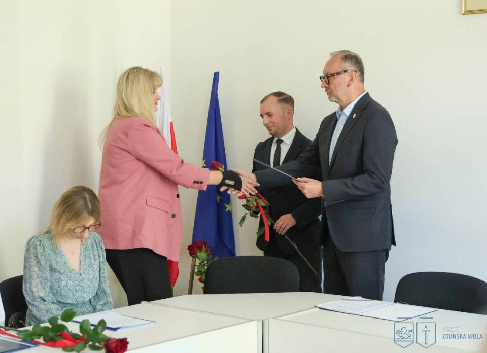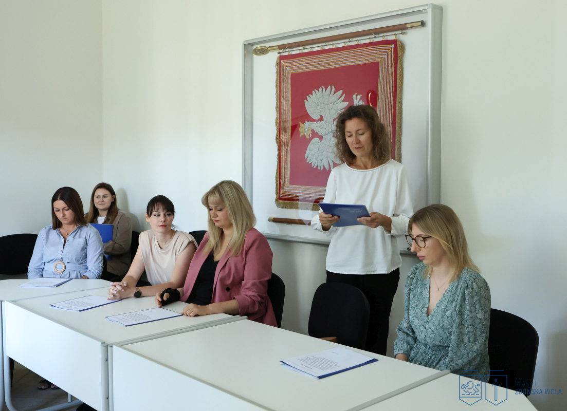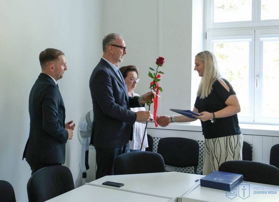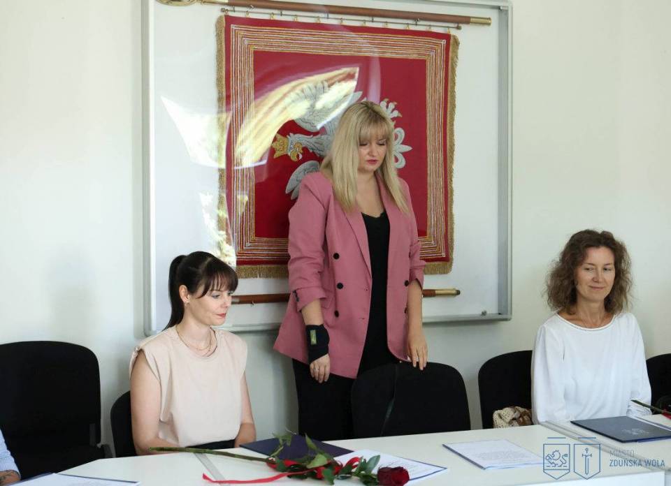 Nowi nauczyciele mianowani złożyli ślubowanie i odebrali akty nadania stopnia zawodowego podczas uroczystości, jaka odbyła się w Urzędzie Miasta Zduńska Wola w środę, 27 sierpnia 2025 roku.