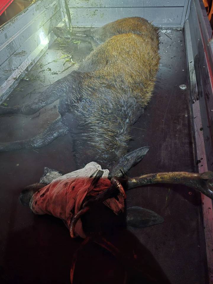 Osiem godzin walki o życie jelenia - poruszająca akcja ratunkowa strażaków, myśliwych i weterynarza [Foto]