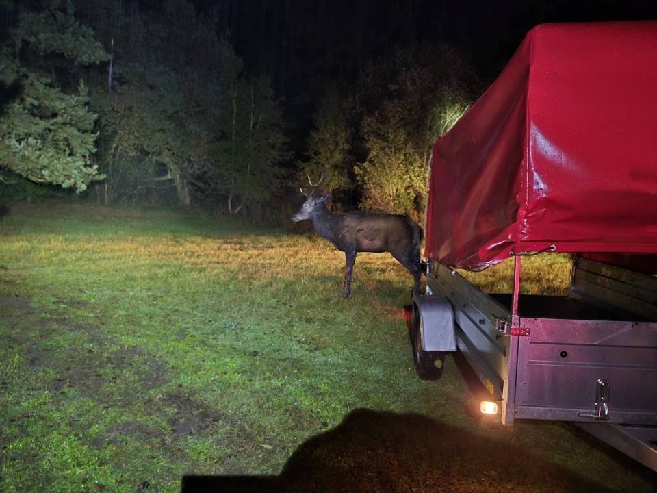 Podczas rutynowego spaceru z psem, Tomasz - myśliwy z Wojskowego Koła Łowieckiego Nr 64 „Dubelt" - natknął się na poruszający widok. W głębokim na cztery metry zbiorniku osadnikowym walczył o życie dorodny jeleń. Zwierzę, najwyraźniej zmylone topografią terenu, nie było w stanie wydostać się na brzeg. Każda próba kończyła się bezskutecznym osuwaniem się z powrotem do wody i błota.