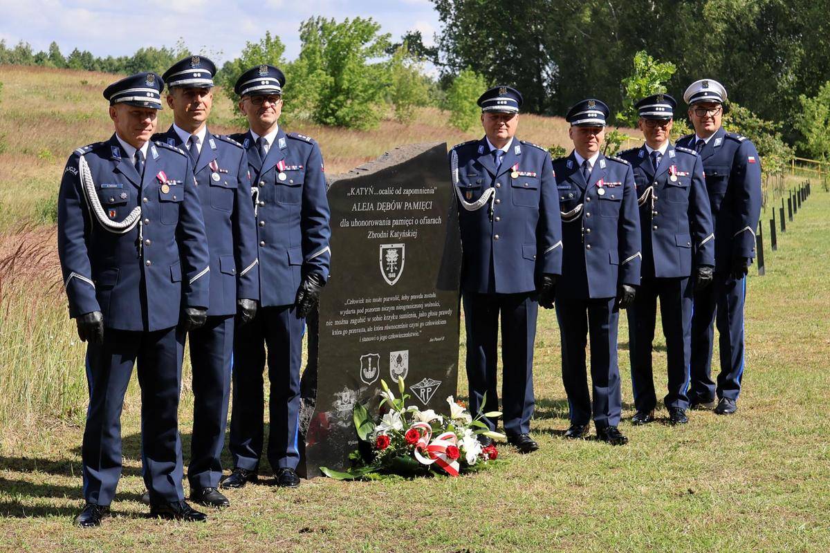 Uroczysty apel poprzedziło oddanie hołdu ofiarom Zbrodni Katyńskiej – przedwojennym policjantom zamordowanym wiosną 1940 roku na terenie ZSRR. Organizatorzy dzisiejszej uroczystości złożyli kwiaty przy pamiątkowej tablicy, znajdującej się w „Alei Dębów" na ulicy Kilińskiego w Łasku.