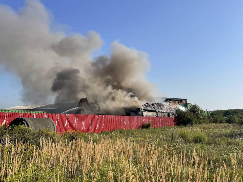 Potężny pożar hali z elektrośmieciami w Bogumiłowie. Płonie kilkaset ton odpadów [Foto, wideo]