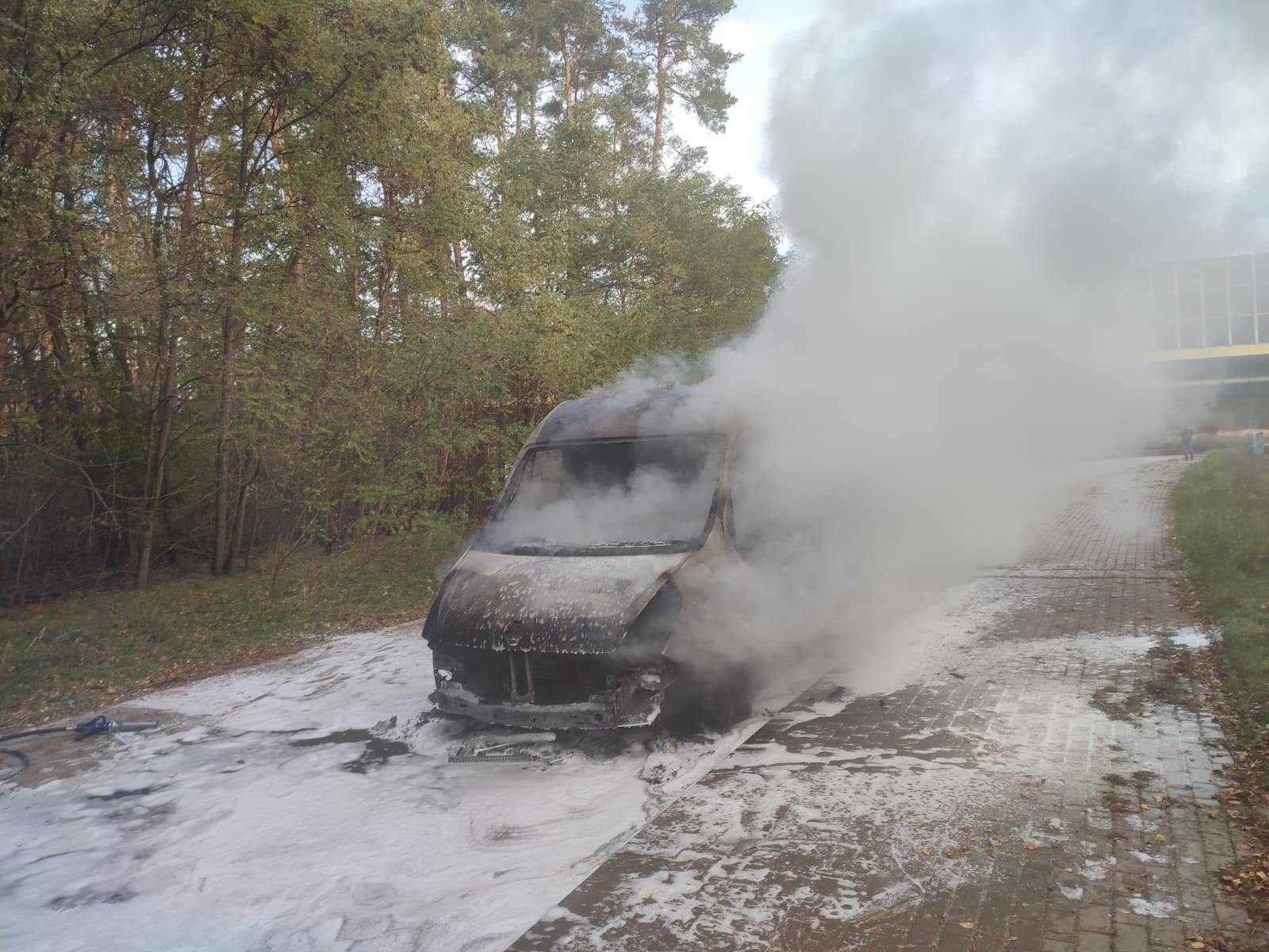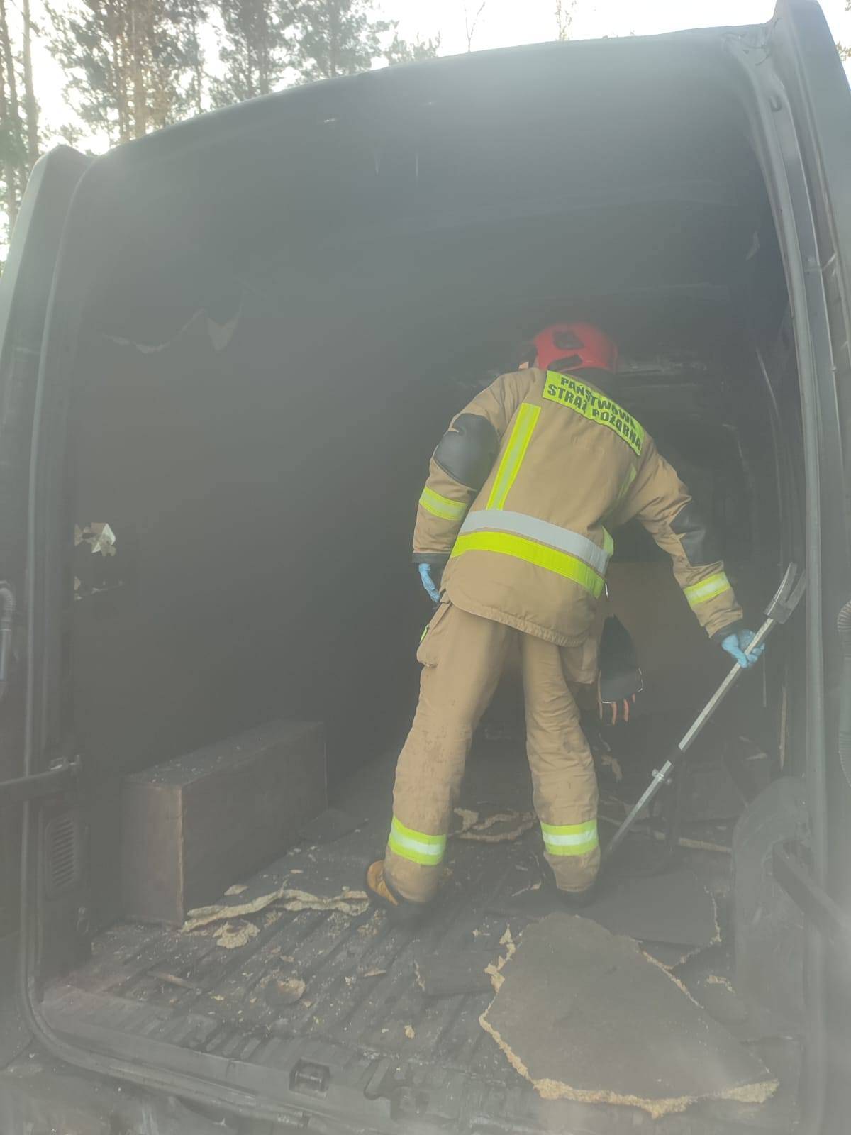 Po przybyciu na miejsce zdarzenia strażacy zastali całkowicie objęty ogniem pojazd kurierski. Szczęśliwie w "dostawczaku" w momencie wybuchu pożaru nie był przewożony żaden ładunek. Działania polegały na zabezpieczeniu terenu, ugaszeniu pożaru oraz dogaszeniu nadpalonych elementów busa. Pomimo szybkiej reakcji służb, pojazd spłonął doszczętnie. Droga w rejonie zdarzenia była chwilowo utrudniona na czas działań gaśniczych.