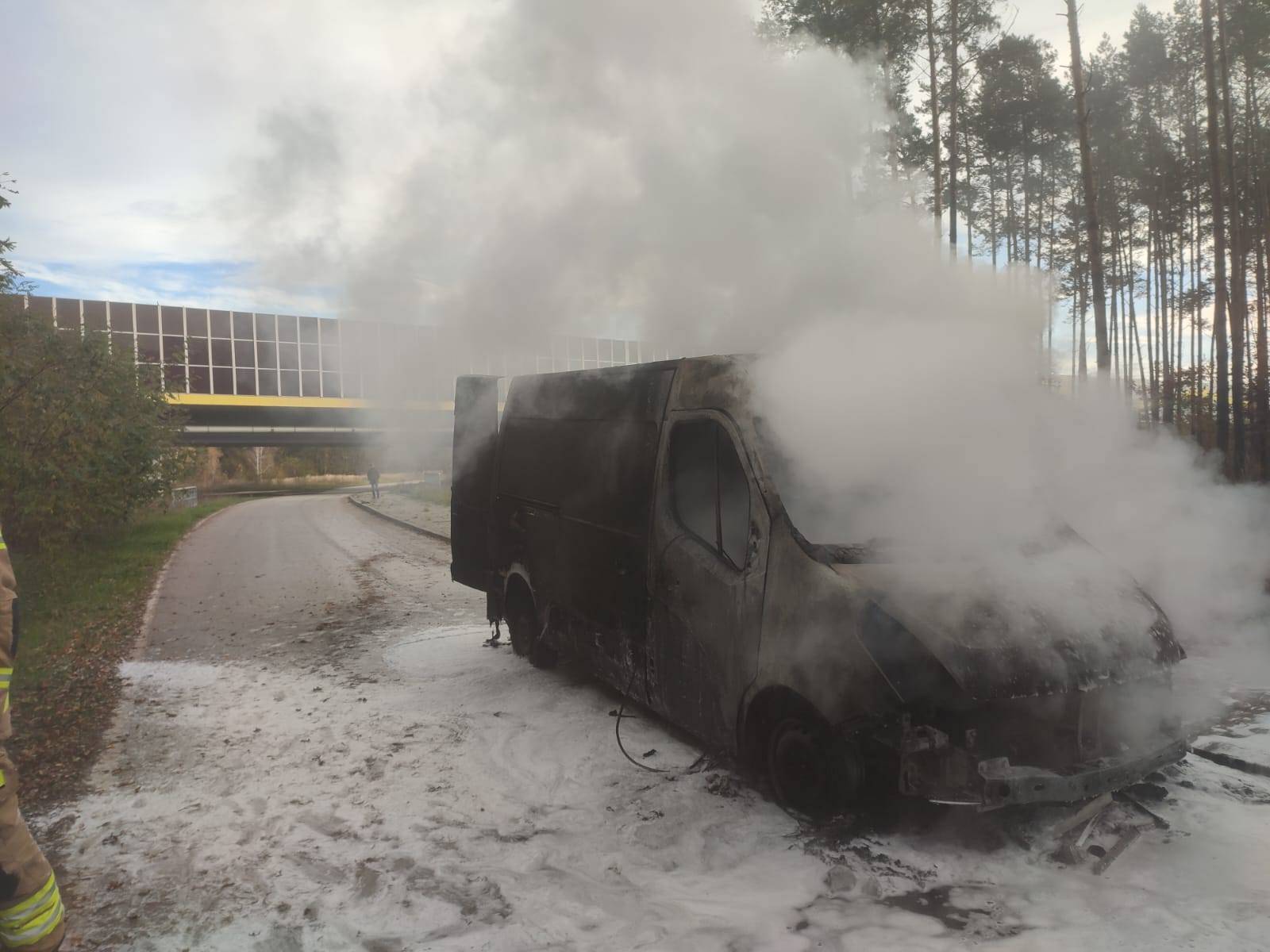 Pożar busa kurierskiego pod wiaduktem S8. Pojazd doszczętnie spłonął [Foto]