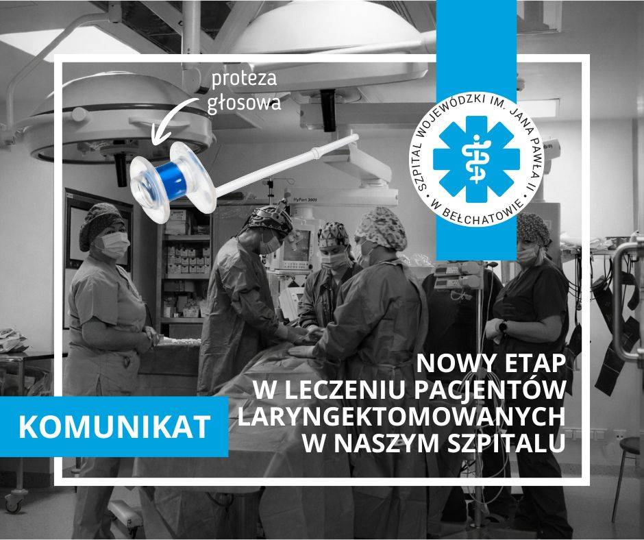W lutym w Szpital Wojewódzki im. Jana Pawła II w Bełchatowie po raz pierwszy wykonano zabieg wszczepienia protezy głosowej podczas operacji całkowitego usunięcia krtani. To przełomowy moment w historii placówki i ważny krok w rozwoju metod leczenia chirurgicznego nowotworów krtani.