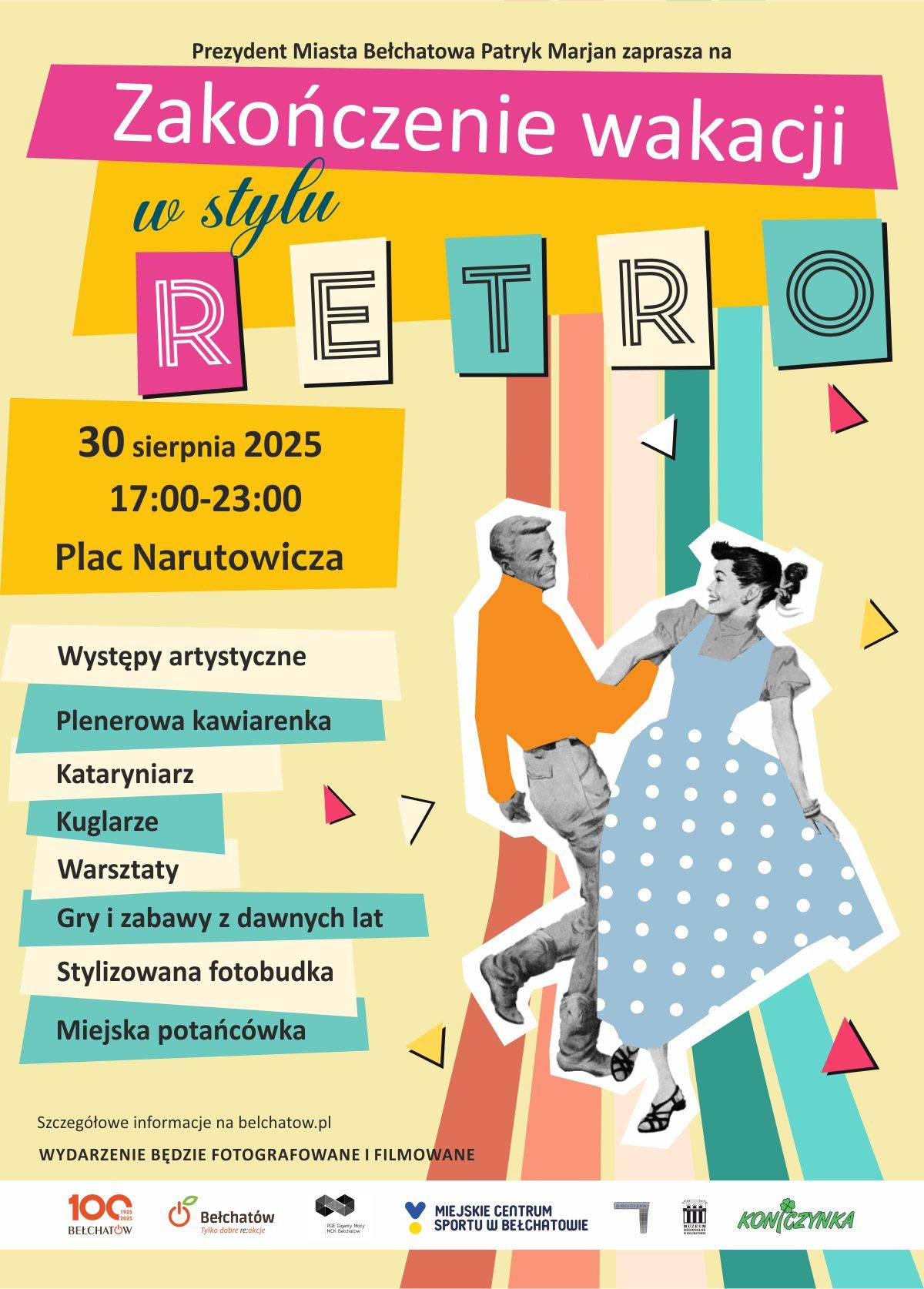 Już w najbliższą sobotę, 30 sierpnia - bełchatowski magistrat zaprasza do centrum miasta na „Zakończenie wakacji w stylu retro". Będzie mnóstwo atrakcji, m.in. plenerowa kawiarenka, kataryniarz, fotobudka i potańcówka. Początek zabawy na placu Narutowicza o godz. 17:00.