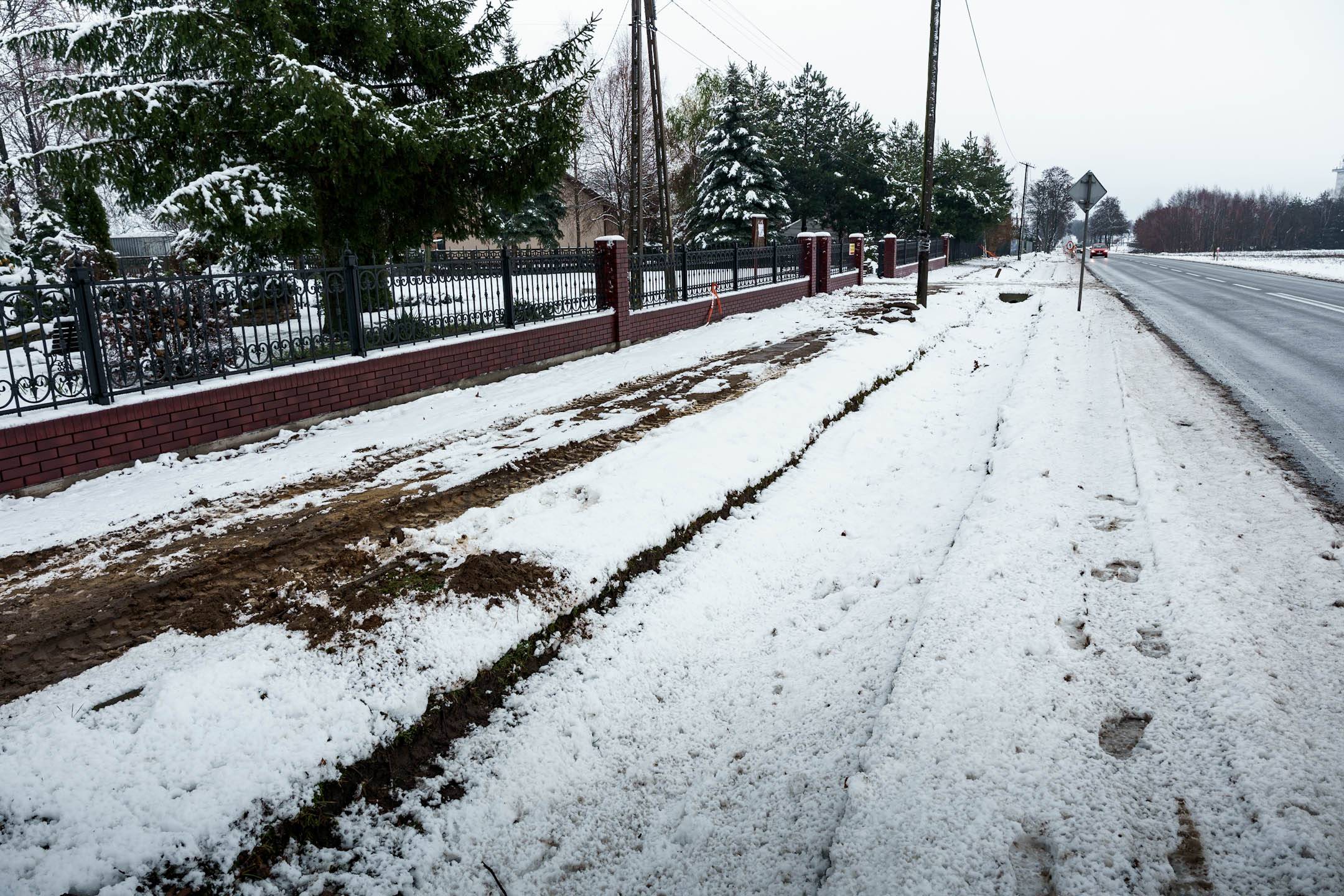 To właśnie fragment, na którym od lat brakowało spójnego i bezpiecznego chodnika. Dotychczasowe odcinki były nieciągłe, wąskie, a w wielu miejscach w złym stanie technicznym, co szczególnie utrudniało poruszanie się dzieciom, seniorom i osobom korzystającym z rowerów.