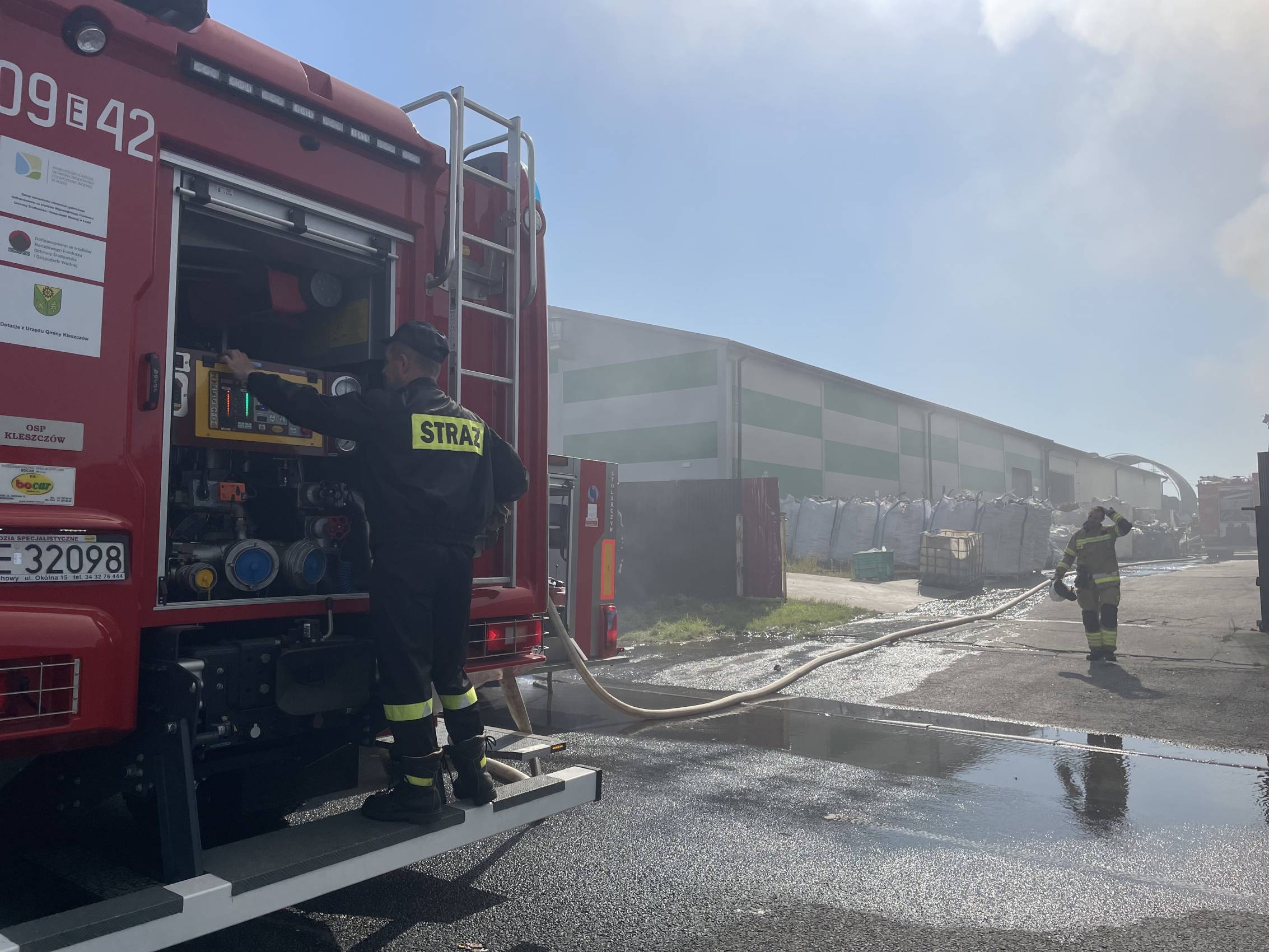 Akcja gaśnicza była prowadzona z dużym zaangażowaniem sił i środków - na miejscu pracowało łącznie 17 zastępów straży pożarnej, w tym wyspecjalizowana jednostka chemiczna z Łodzi. Ze względu na specyfikę przechowywanych materiałów - w tym tworzyw sztucznych i komponentów elektronicznych - pożar generował intensywne zadymienie, widoczne z kilku kilometrów. Mimo to, przeprowadzone przez strażaków z Łodzi pomiary stężeń szkodliwych substancji nie wykazały zagrożenia dla zdrowia mieszkańców okolicznych miejscowości.