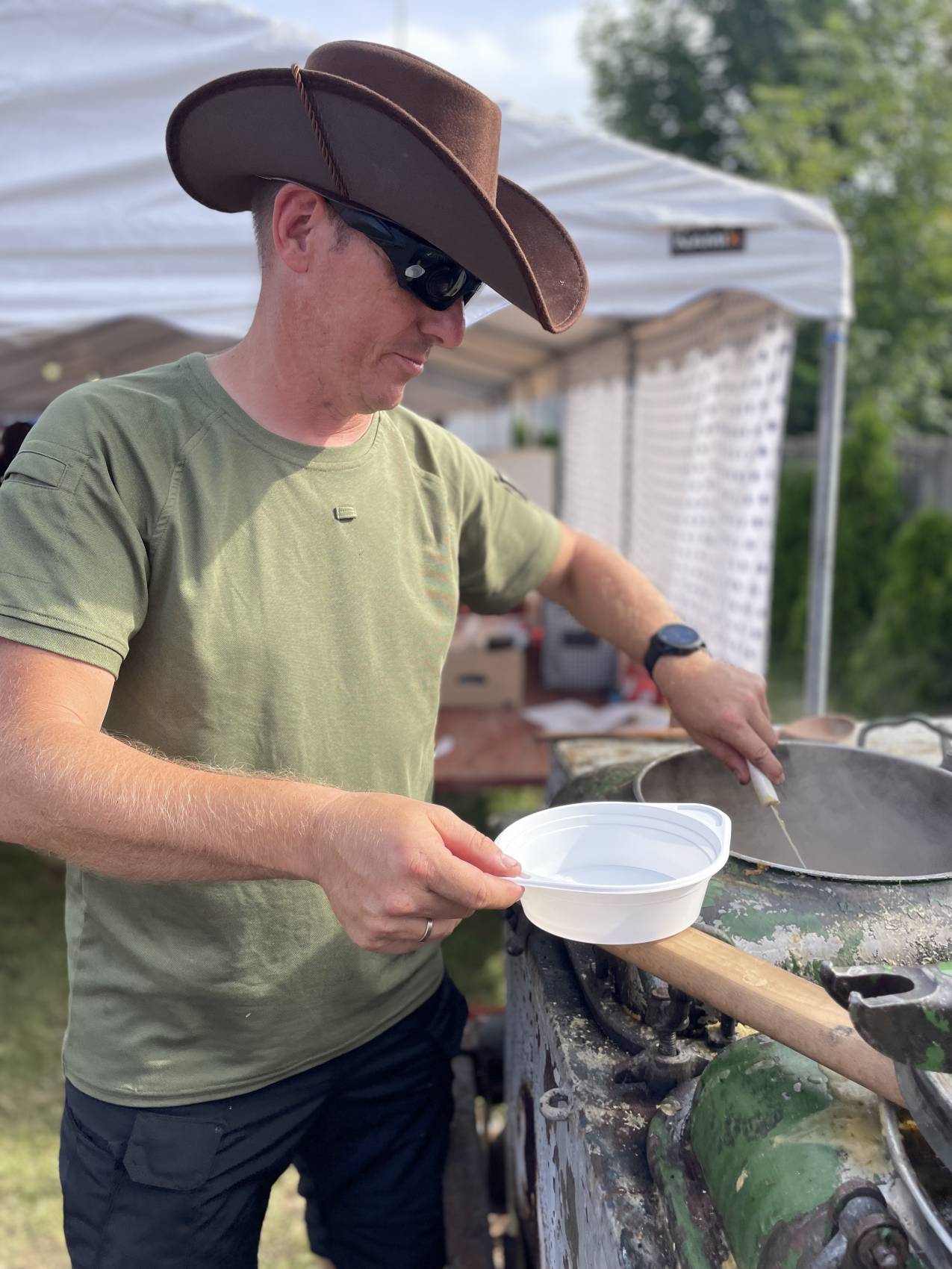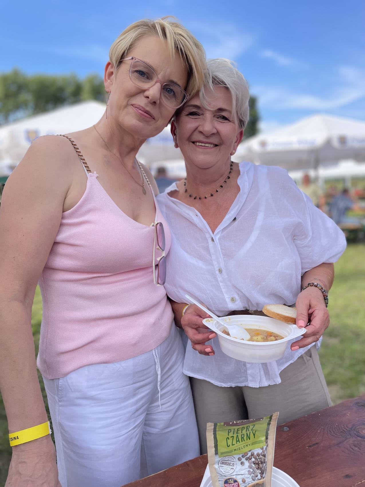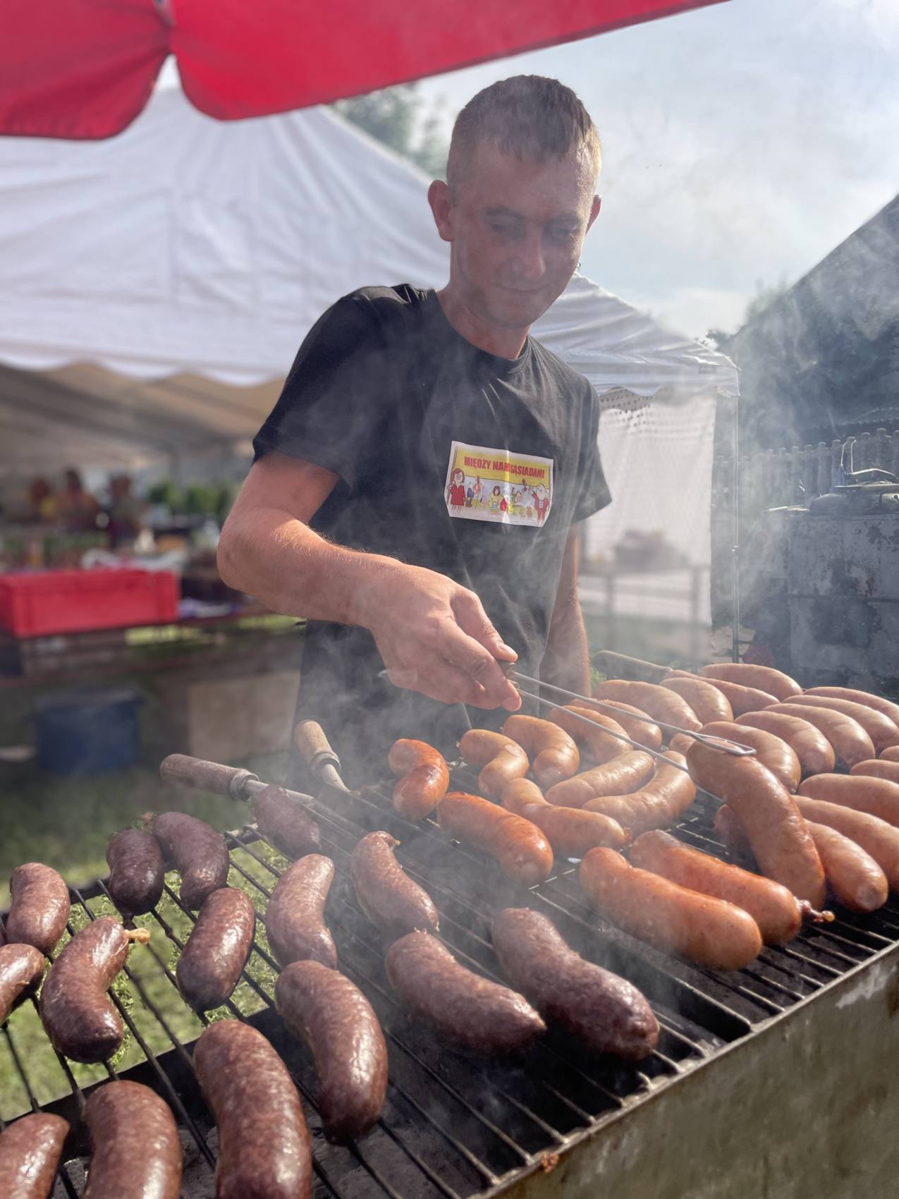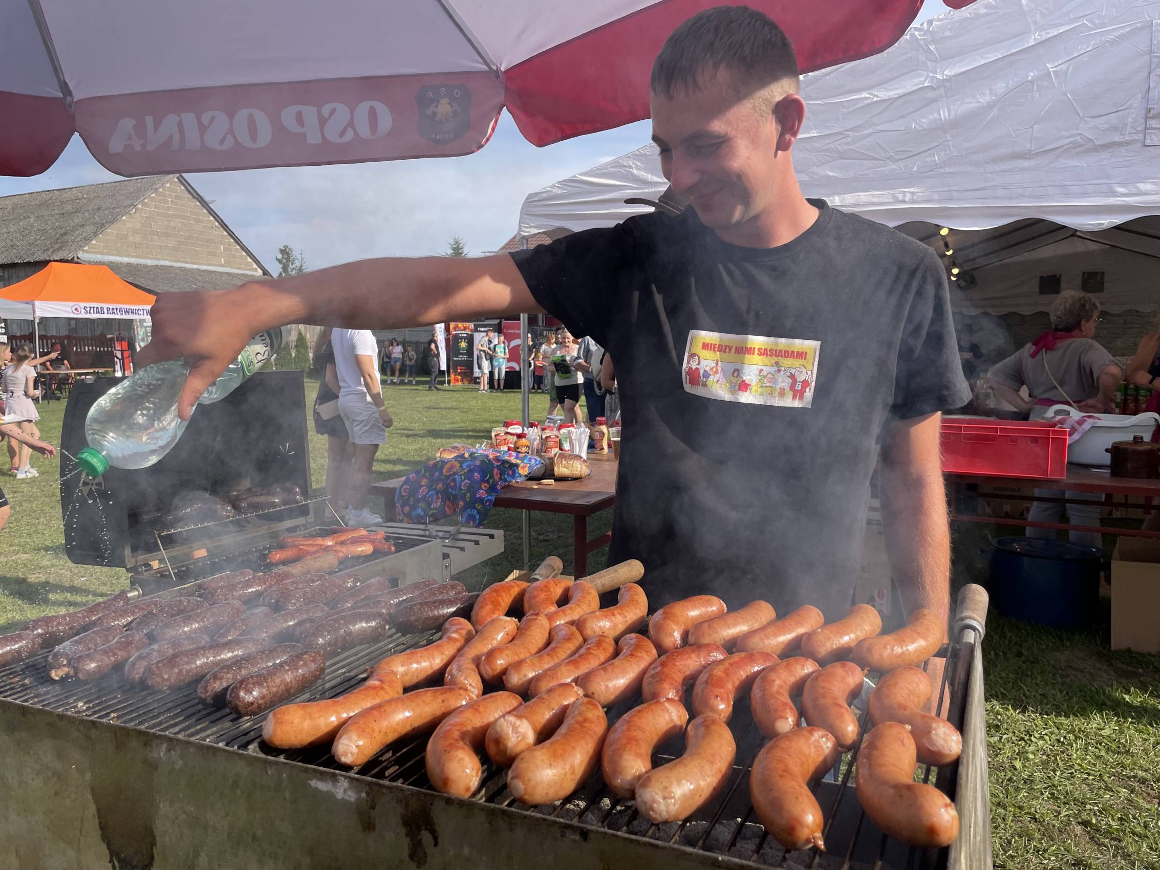 Jednym z najważniejszych elementów Dnia Sąsiada od samego początku są kulinaria. Stoły uginały się od domowych wypieków, swojskich wędlin, chrupiącego chleba ze smalcem i kiszonym ogórkiem. Nie zabrakło też tradycyjnej, długo wyczekiwanej grochówki z kuchni polowej, serwowanej prosto z ogromnego garnka – dania, które dla wielu stało się symbolem tego wydarzenia.