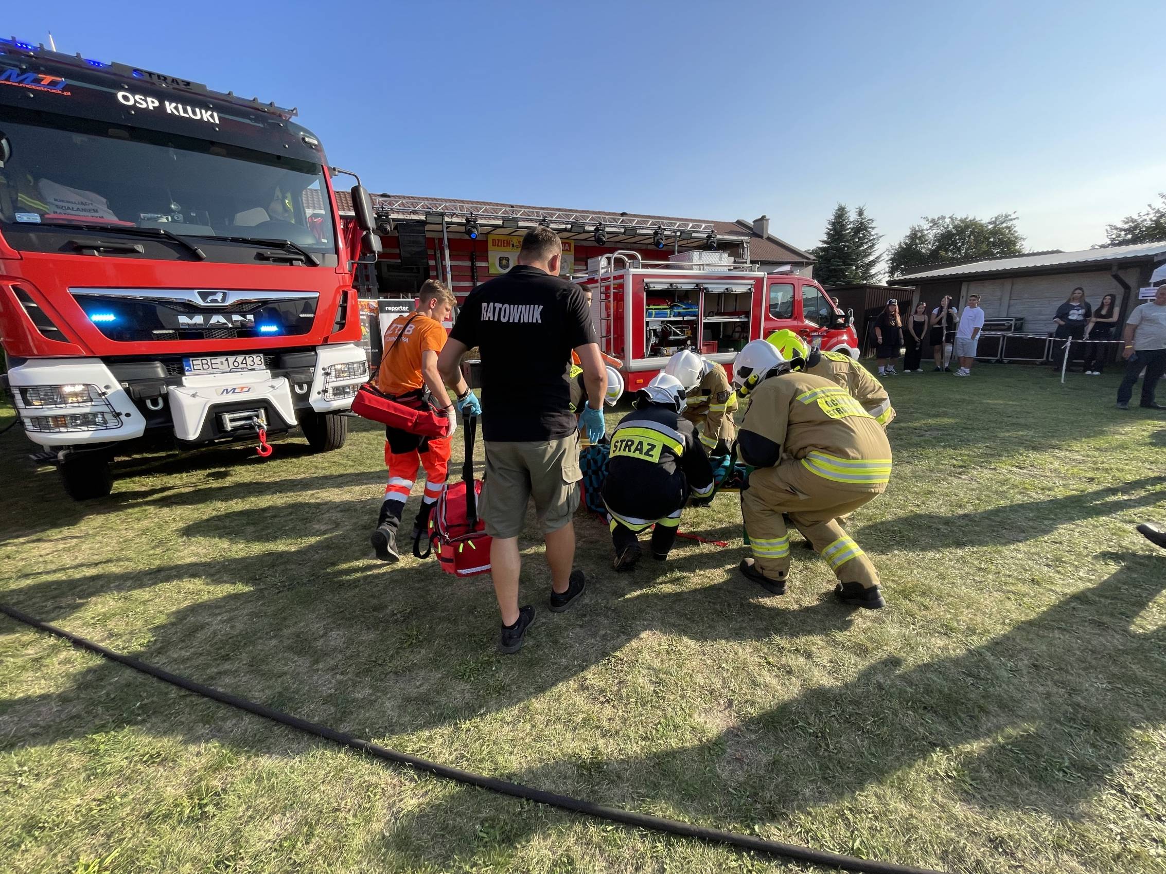 Ratownicy, strażacy i... bykDla spragnionych emocji nie zabrakło również atrakcji z przymrużeniem oka – konkurs jazdy na byku, rzut snopkiem, a także niecodzienna okazja do przejażdżki monster truckiem, która wzbudzała szczególne emocje wśród najmłodszych.