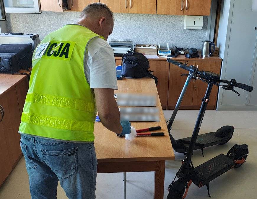 - Podczas przeszukania pojazdu policjanci znaleźli również nożyce do cięcia metalu, dwie hulajnogi elektryczne, z których jedna miała zamalowane numery seryjne oraz przymocowany był do niej łańcuch z przeciętą kłódką. Te okoliczności mogły świadczyć o ich nielegalnym pochodzeniu. 33-latek został zatrzymany i noc spędził w policyjnej celi. Śledczy pracując nad tą sprawą ustalili, że jeden z jednośladów został skradziony na terenie Zduńskiej Woli 30 czerwca 2025 roku - przekazuje st. asp. Piotr Siemicki z wieruszowskiej policji.