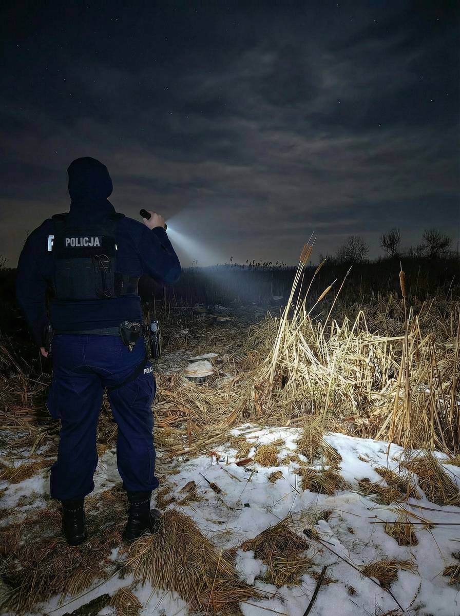 - Z uwagi na niską temperaturę oraz brak kontaktu z mężczyzną dyżurny łaskiej Komendy Powiatowej Policji skierował wszystkie dostępne patrole do działań poszukiwawczych. Około godziny 00:30 dyżurny łaskiej jednostki otrzymał zgłoszenie od mieszkańca miasto, który poinformował, że w rejonie ulicy Kilińskiego słyszy wołanie o pomoc dochodzące z terenów zalewowych w pobliżu oczyszczalni ścieków - mówi młodszy aspirant Bartłomiej Kozłowski, oficer praswoy KPP Łask.