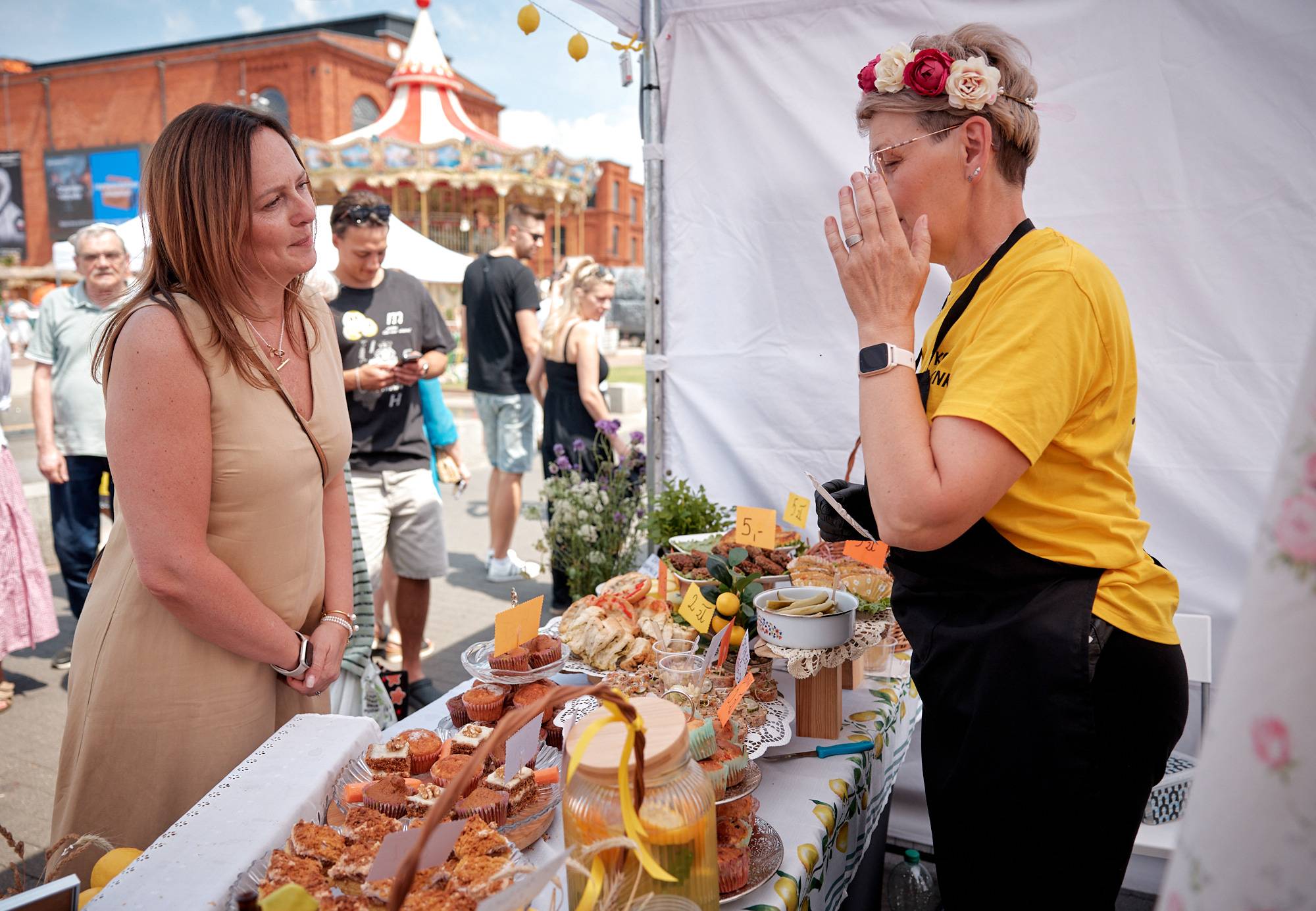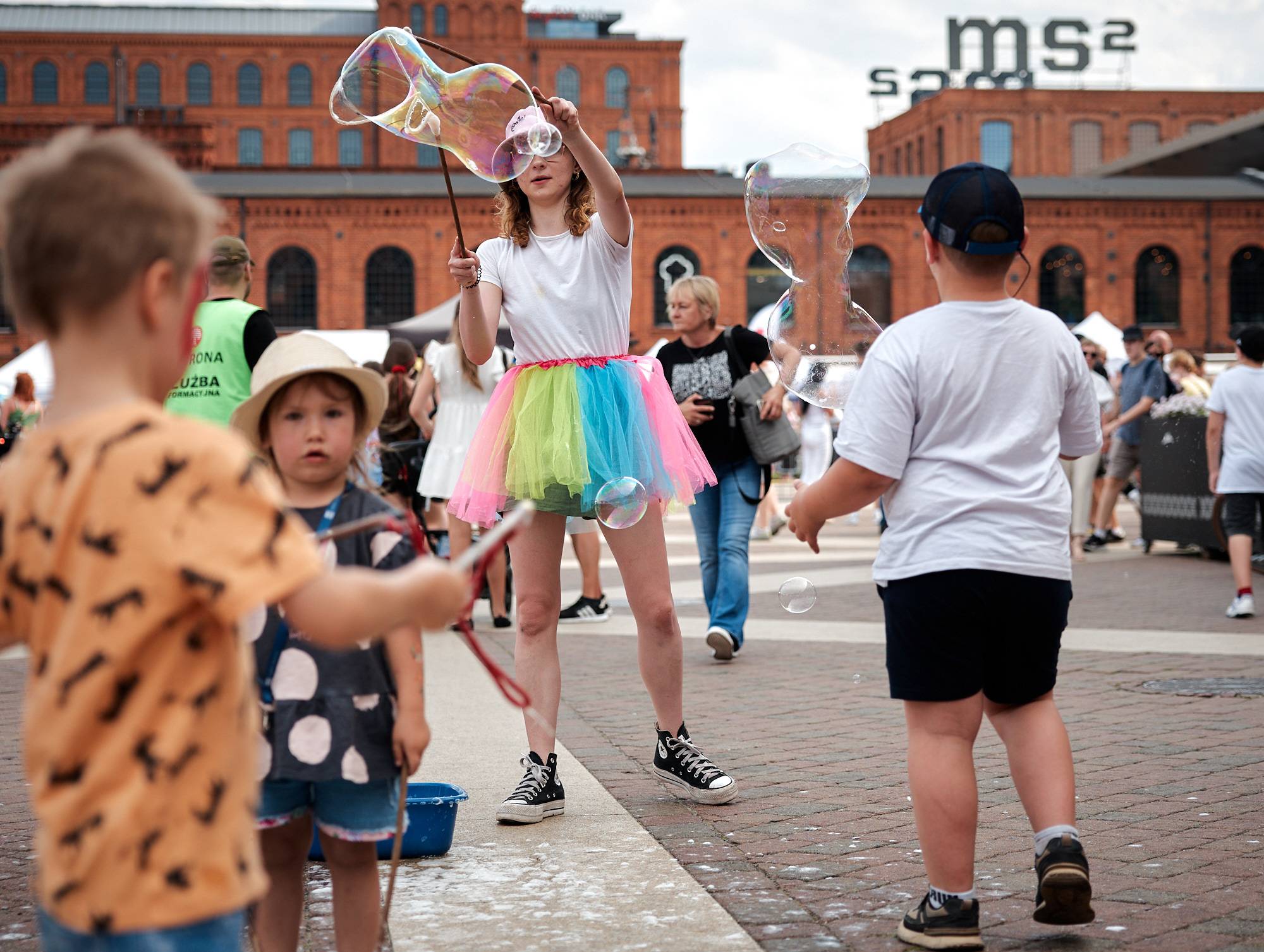 W niedzielę na rynku w Manufakturze bawiły się całe rodziny. Na dzieci czekała moc bezpłatnych atrakcji m.in. strzelnica z puszkami, w której można było wygrać gigantyczne maskotki, dmuchańce, warsztaty ludowe, pokazy baniec, malowanie buziek i brokatowych tatuaży. Były animacje oraz smaczne przekąski m.in. wata cukrowa, owoce w czekoladzie, frytki, churrosy, napoje i zakręcone ziemniaczki.