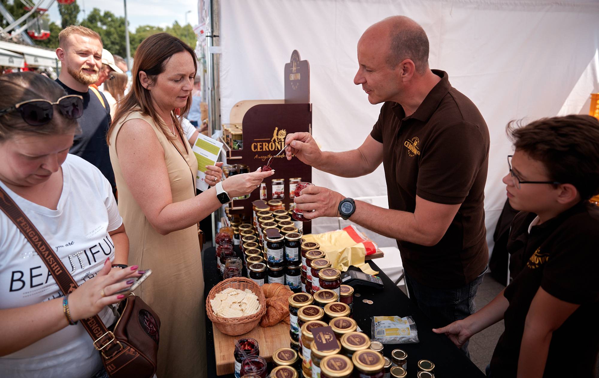 Wśród wystawców było wiele KGW oraz producentów regionalnej, tradycyjnej żywności. Ich stoiska kusiły pierogami z różnorodnym farszem, żurkiem na prawdziwym zakwasie, rzemieślniczymi serami czy domowymi przetworami. Smaki i aromaty przyciągały gości jarmarku a produkty oraz potrawy błyskawicznie znikały. - Wystawialiśmy się dzisiaj ze świeżonką, bigosem i pierogami z mięsem i kapustą, mamy też duży wybór ciast. Jest bardzo duże zainteresowanie, bardzo dużo chętnych, świeżonka już się skończyła – przyznał ok. godz. 16 Norbert Dudek z KGW Pod Lipami z Koła w pow. piotrkowskim. Gospodynie z KGW Chorki z pow. łęczyckiego do Łodzi przyjechały z prażokami, karkówką w sosie i żurkiem chorkowskim. Jak zdradziła Dorota Suchocz z koła, zupa jest robiona według bardzo starego przepisu przekazywanego z pokolenia na pokolenie. – Podstawą jest zakwas chorkowski z mąki żytniej z dodatkiem skórki chleba, kisi się go 7 dni – mówi.