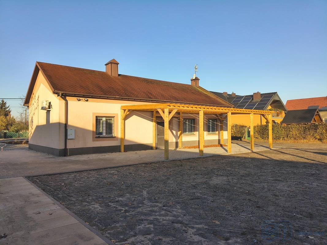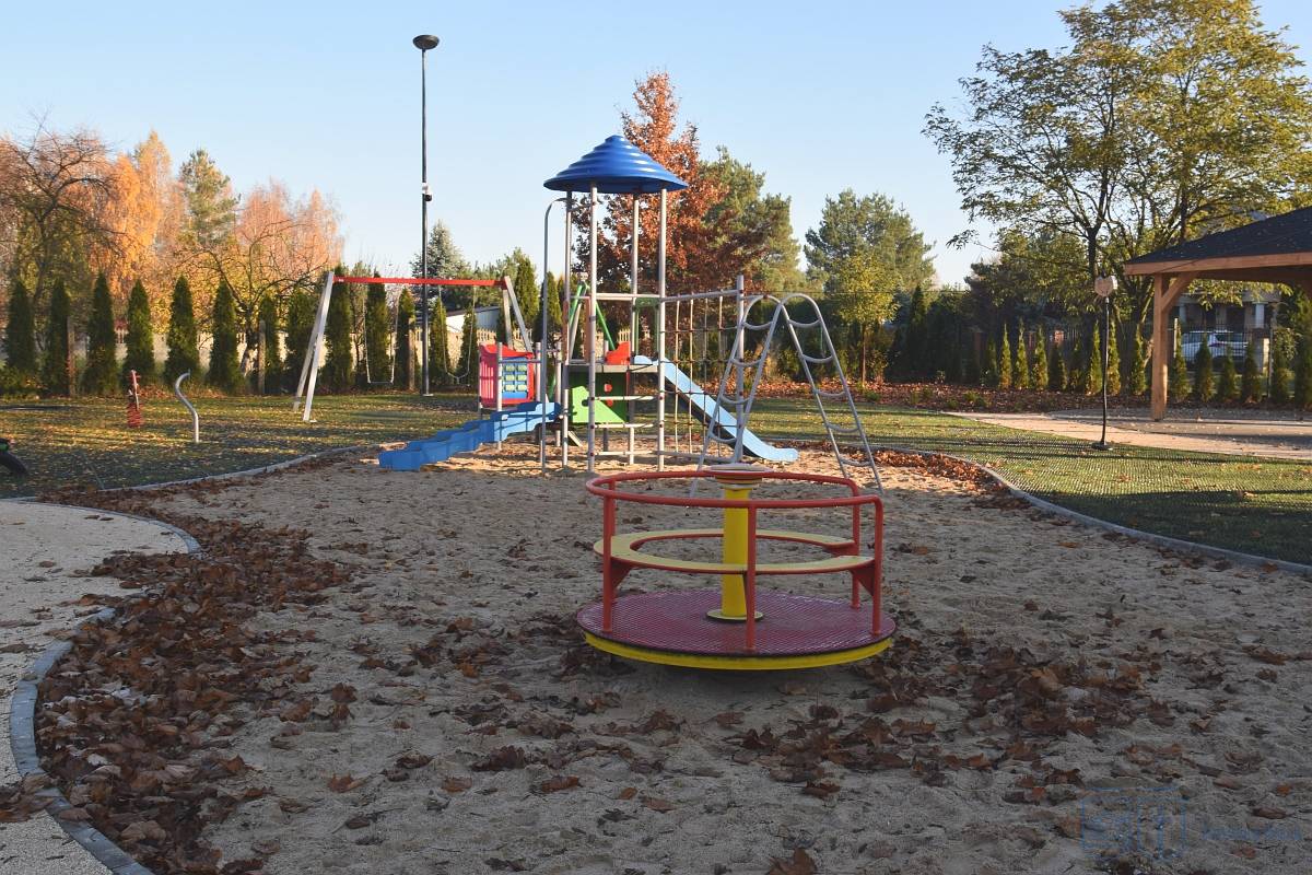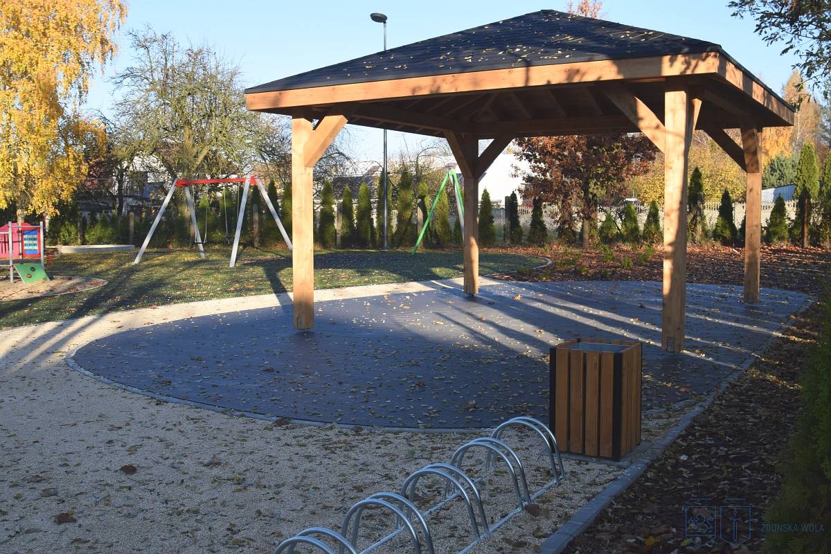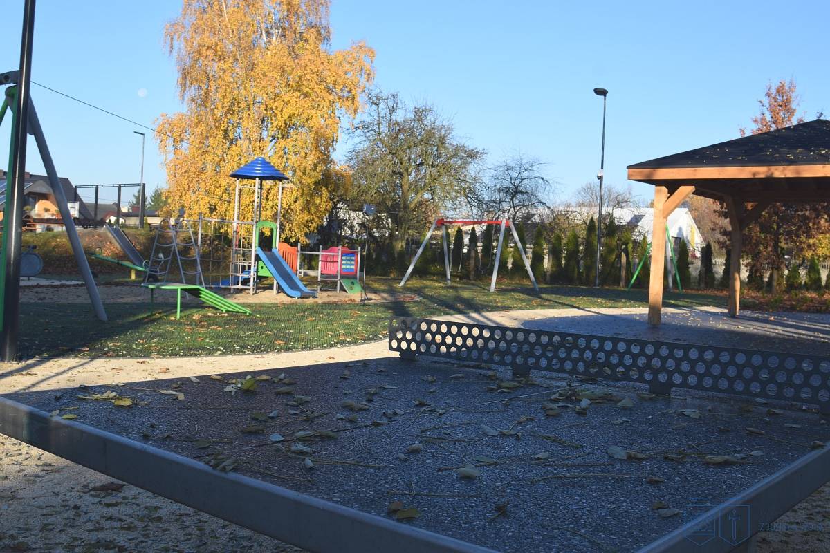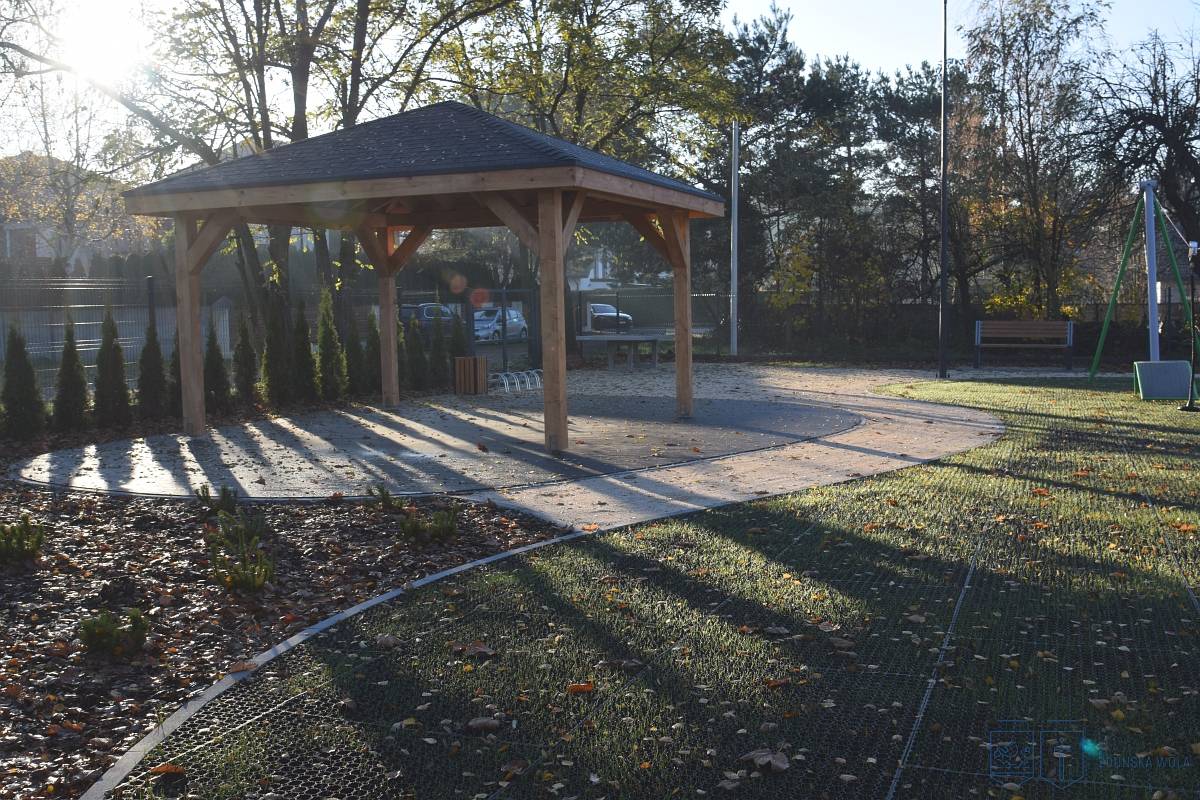 Przy świetlicy stanęła altana, która będzie pełnić funkcję miejsca odpoczynku oraz przestrzeni do organizacji spotkań sąsiedzkich i zajęć edukacyjnych. Wykonano także ścieżkę z nawierzchni mineralnej, nawierzchnię z krat gumowych, pergole oraz trejaż obsadzony pnączami. Ustawiono nowe ławki oraz kosze na odpady.